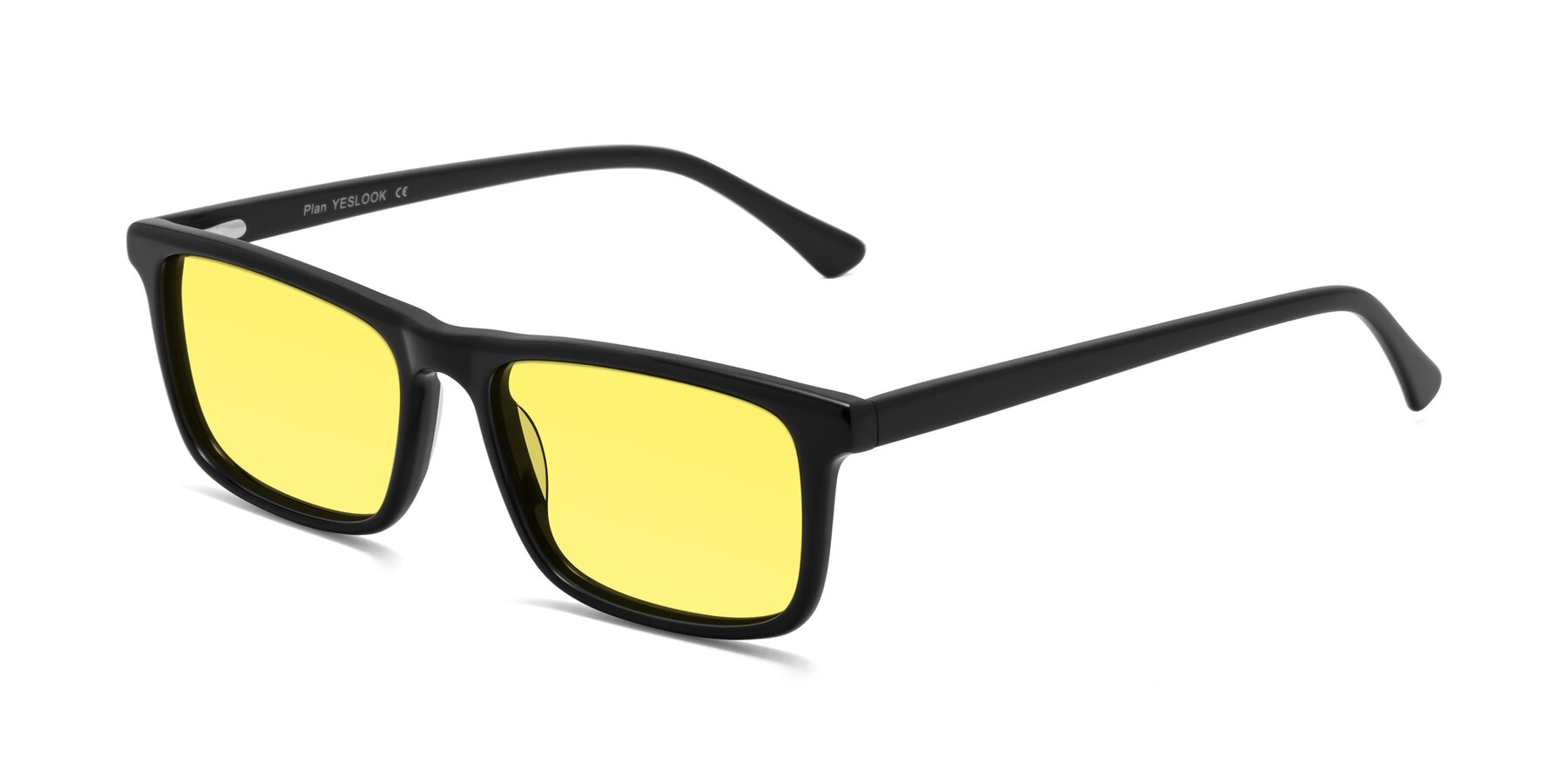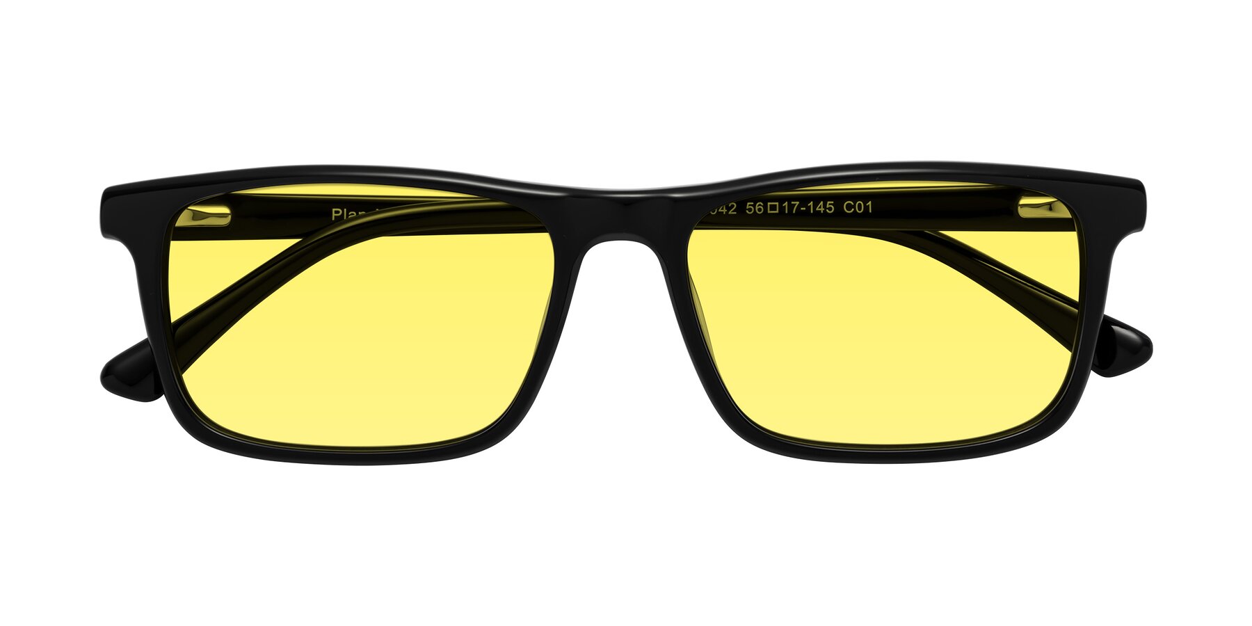 Black Classic Acetate Rectangle Tinted Sunglasses with Medium Yellow Sunwear Lenses