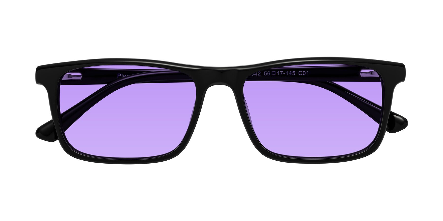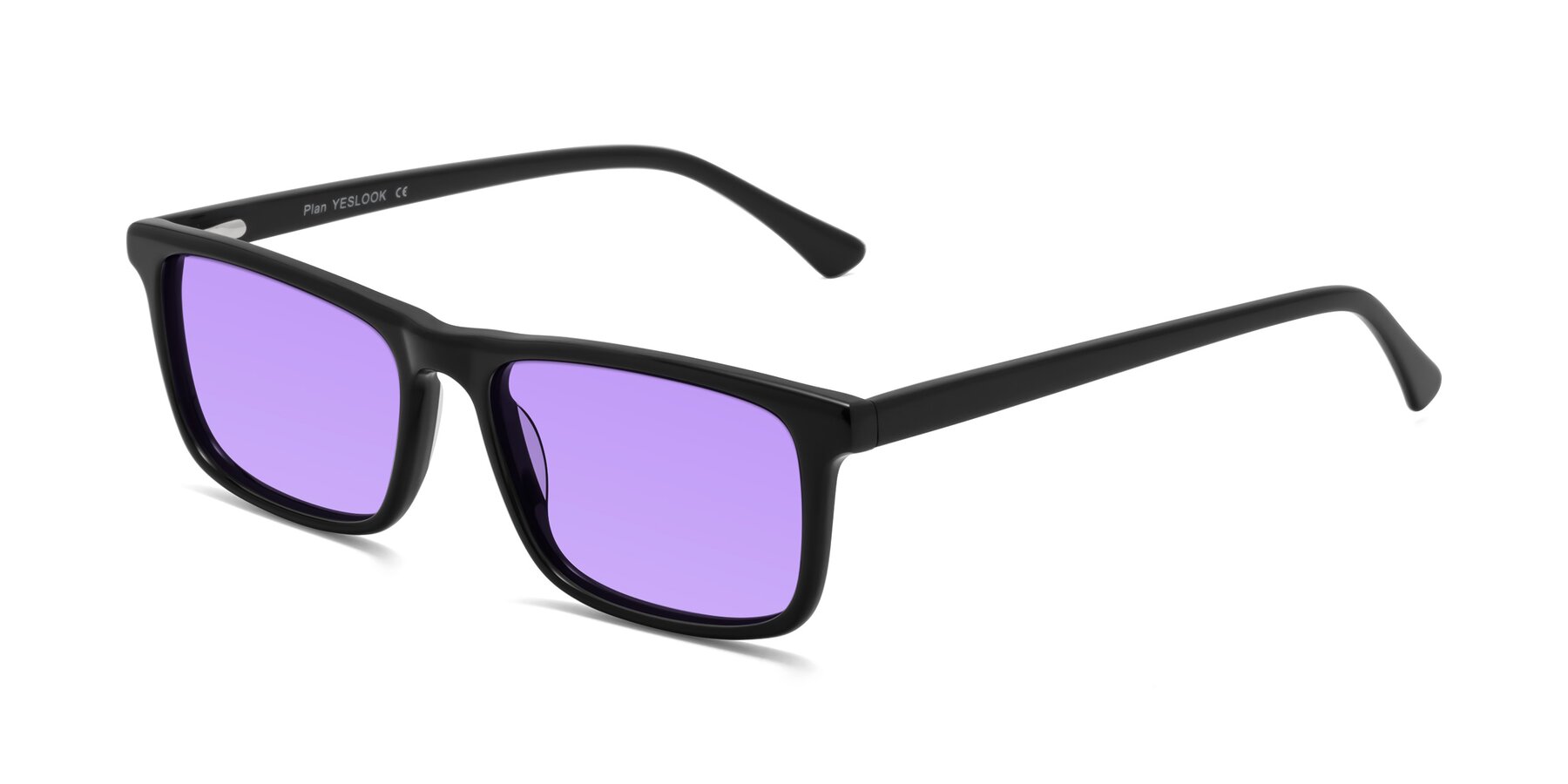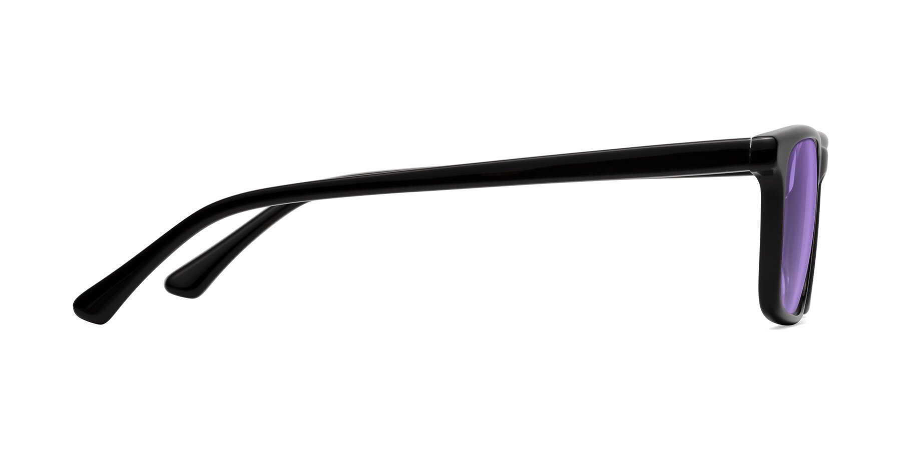 Black Classic Acetate Rectangle Tinted Sunglasses with Medium Purple Sunwear Lenses