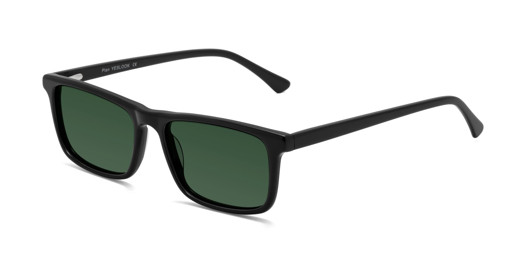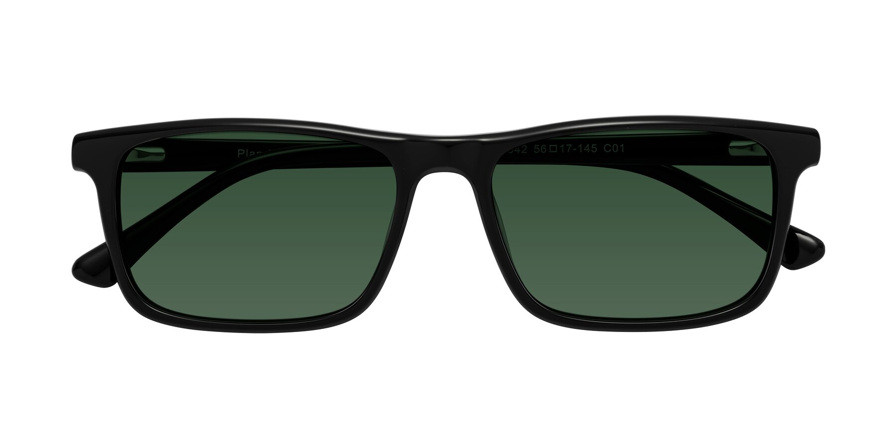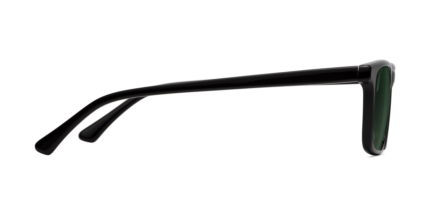Black Classic Acetate Rectangle Tinted Sunglasses with Green Sunwear Lenses