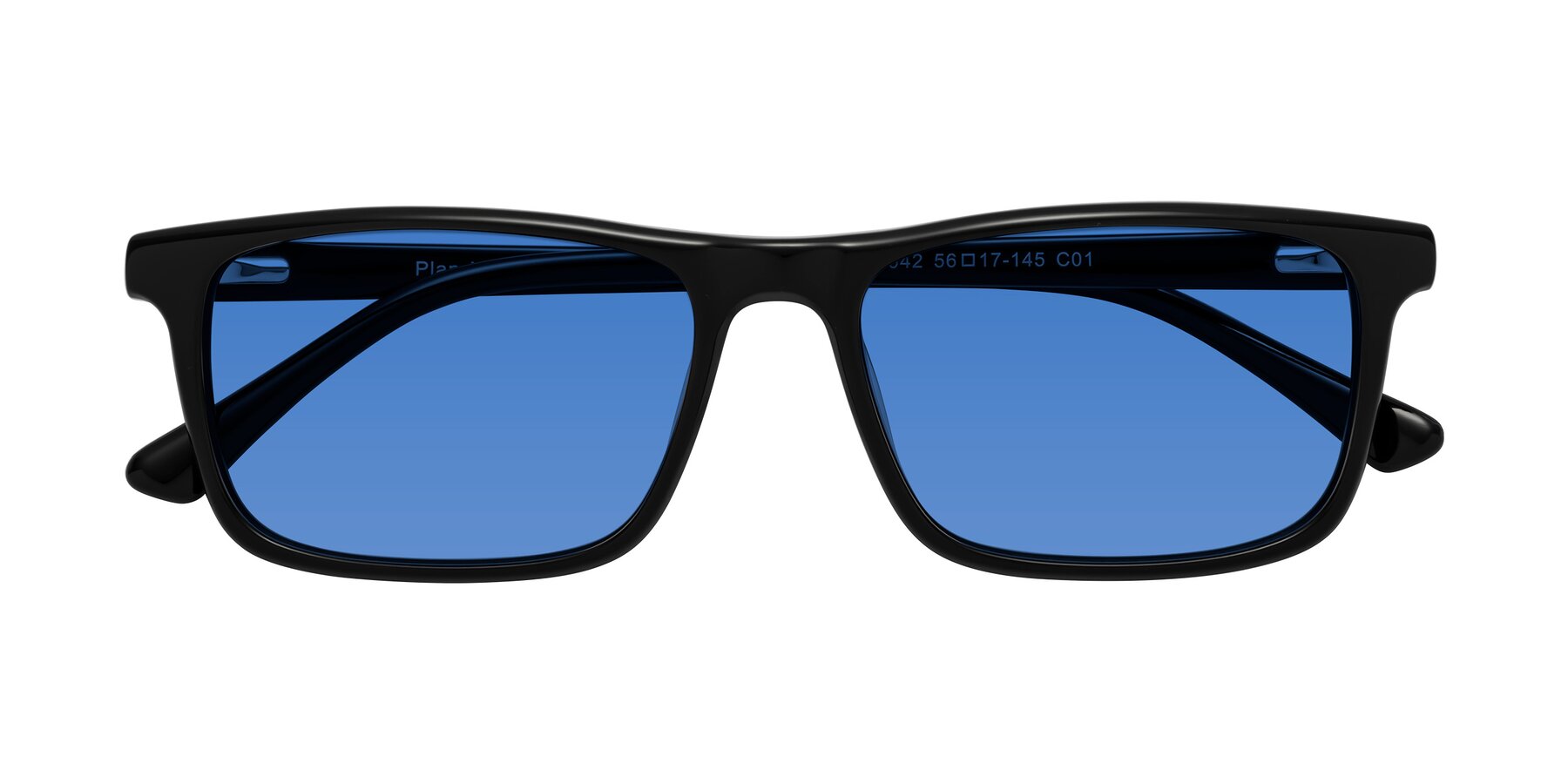 Black Classic Acetate Rectangle Tinted Sunglasses with Blue Sunwear Lenses