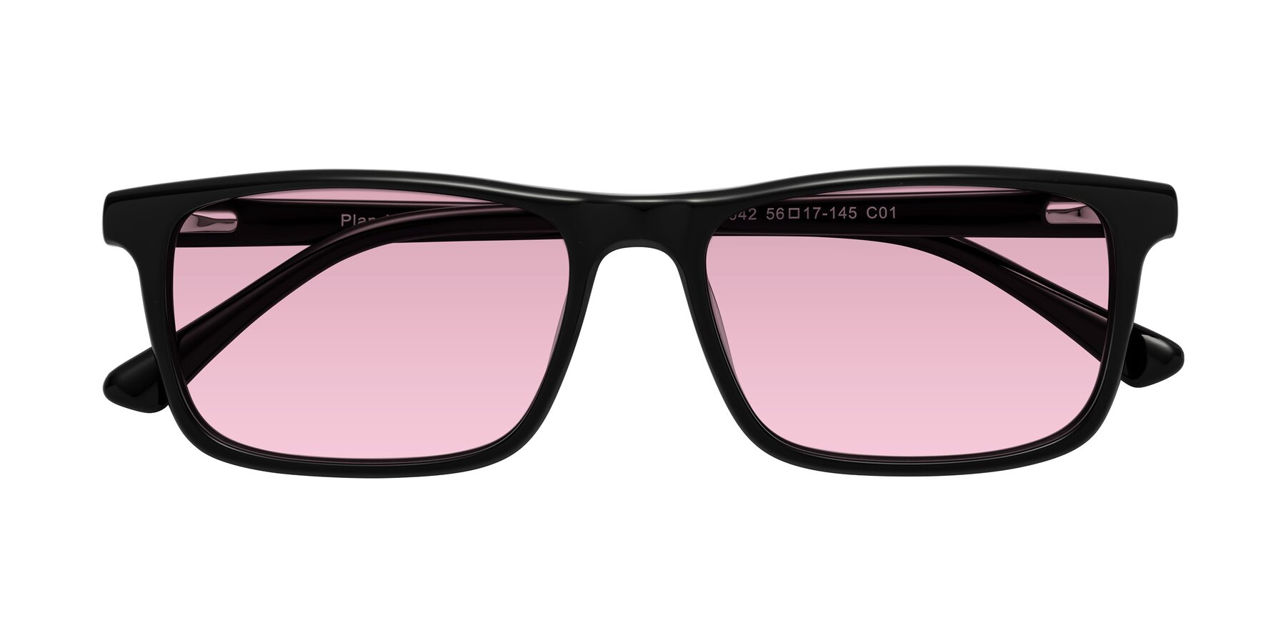Black Classic Acetate Rectangle Tinted Sunglasses with Light Wine Sunwear Lenses