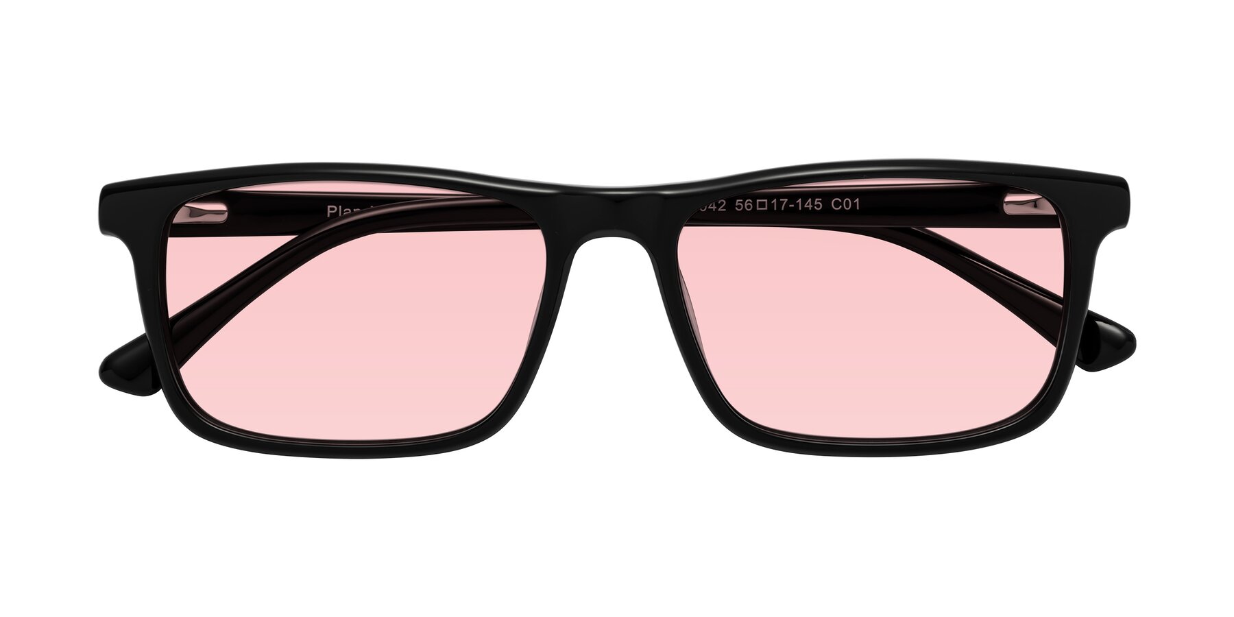 Black Classic Acetate Rectangle Tinted Sunglasses with Light Garnet Sunwear Lenses