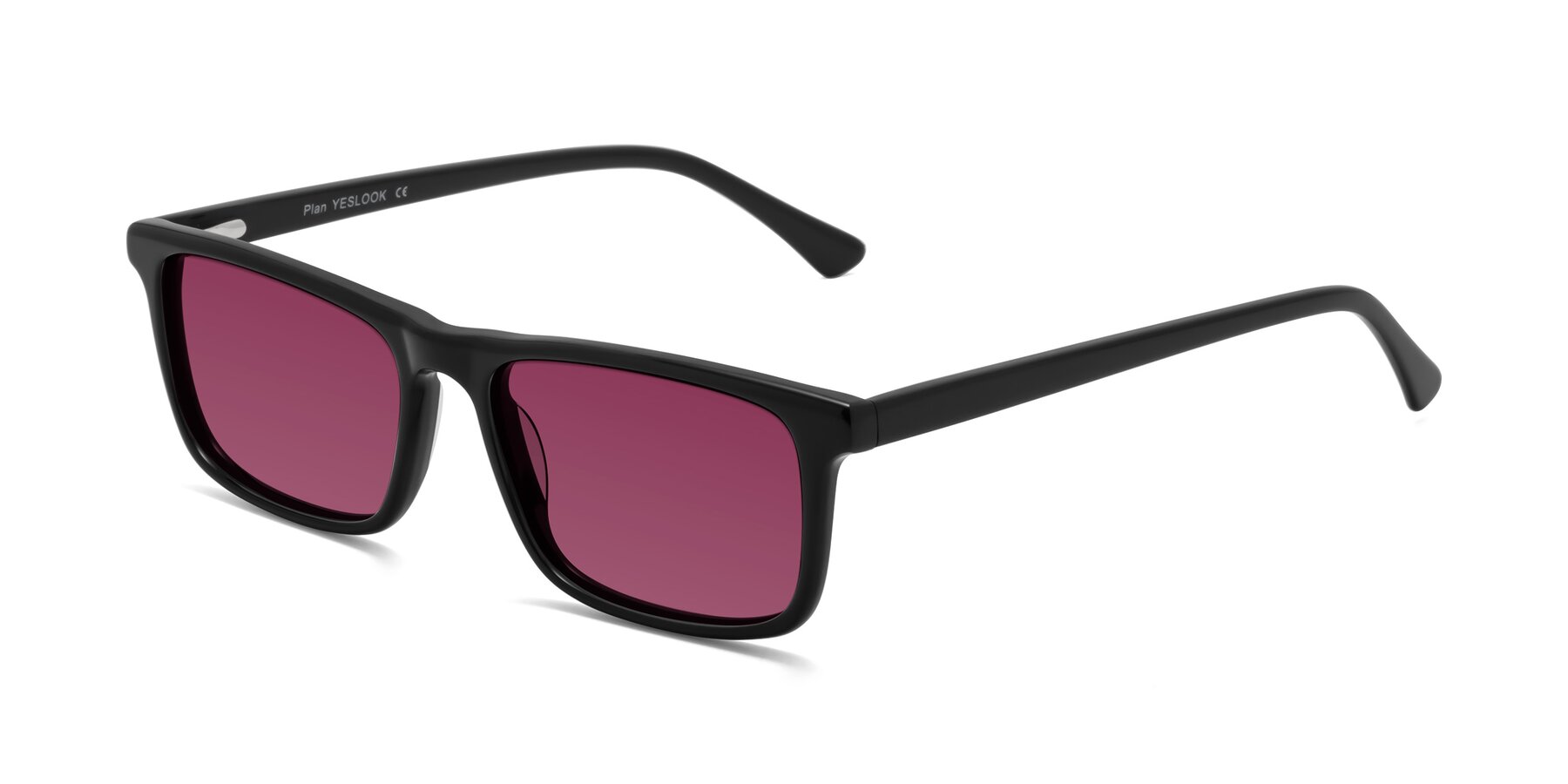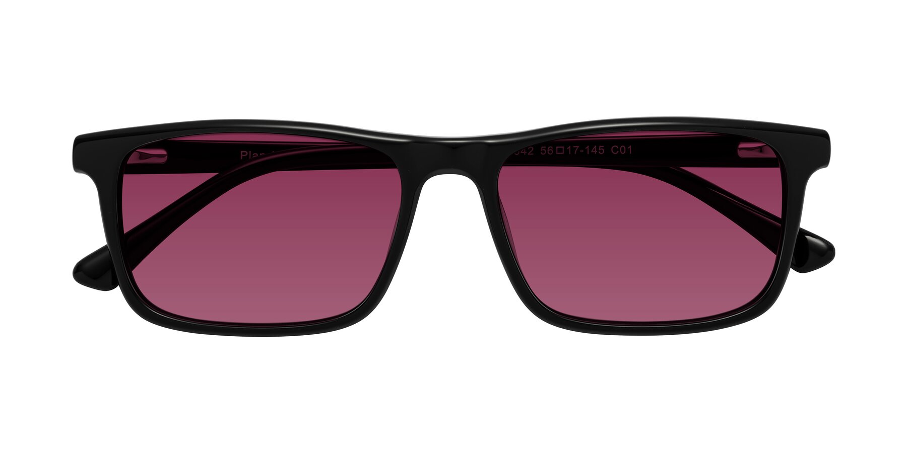 Black Classic Acetate Rectangle Tinted Sunglasses with Wine Sunwear Lenses