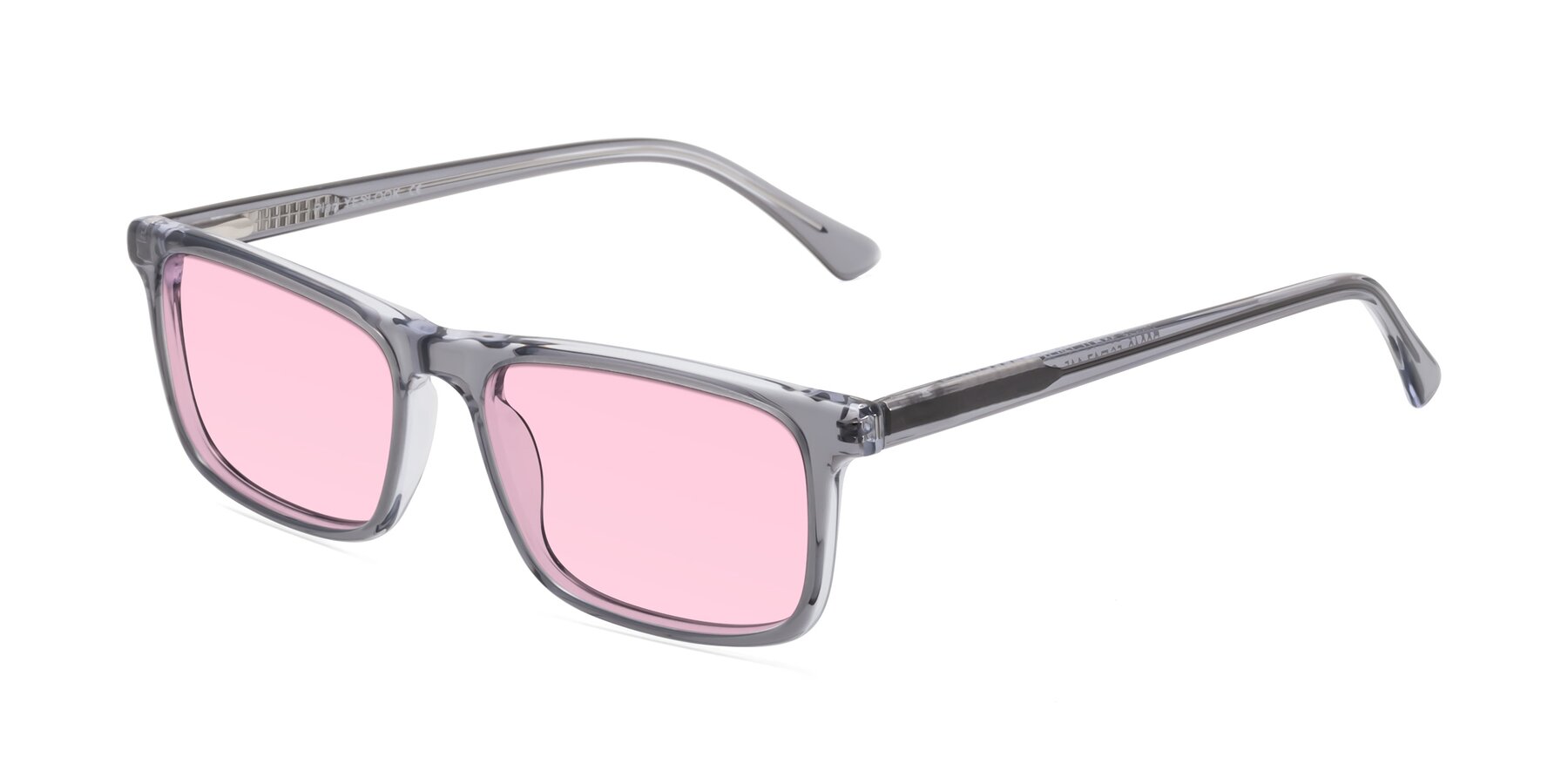 Gray Classic Acetate Rectangle Tinted Sunglasses with Light Pink Sunwear Lenses