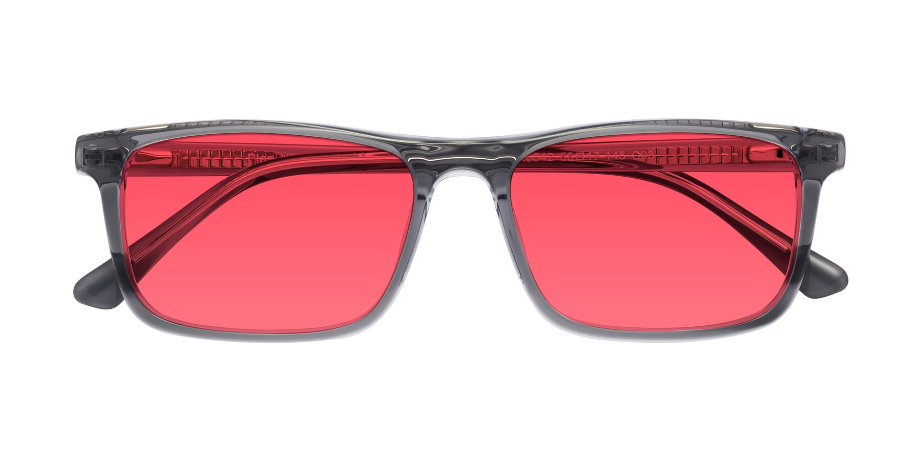 Gray Classic Acetate Rectangle Tinted Sunglasses with Red Sunwear Lenses