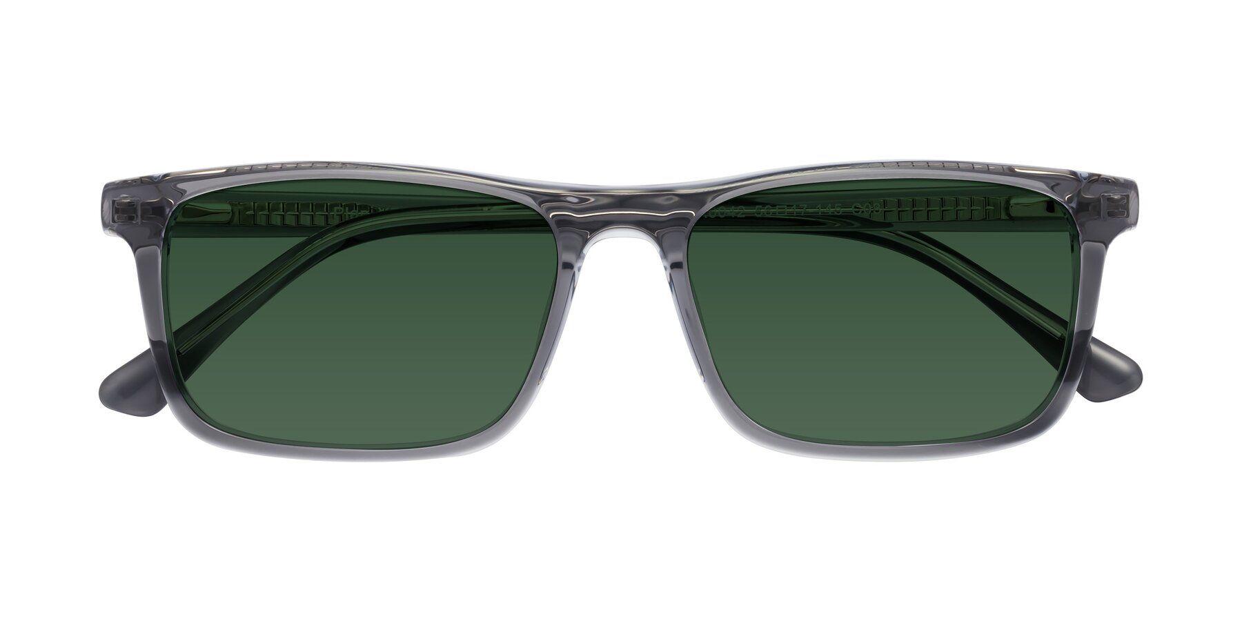 Gray Classic Acetate Rectangle Tinted Sunglasses with Green Sunwear Lenses