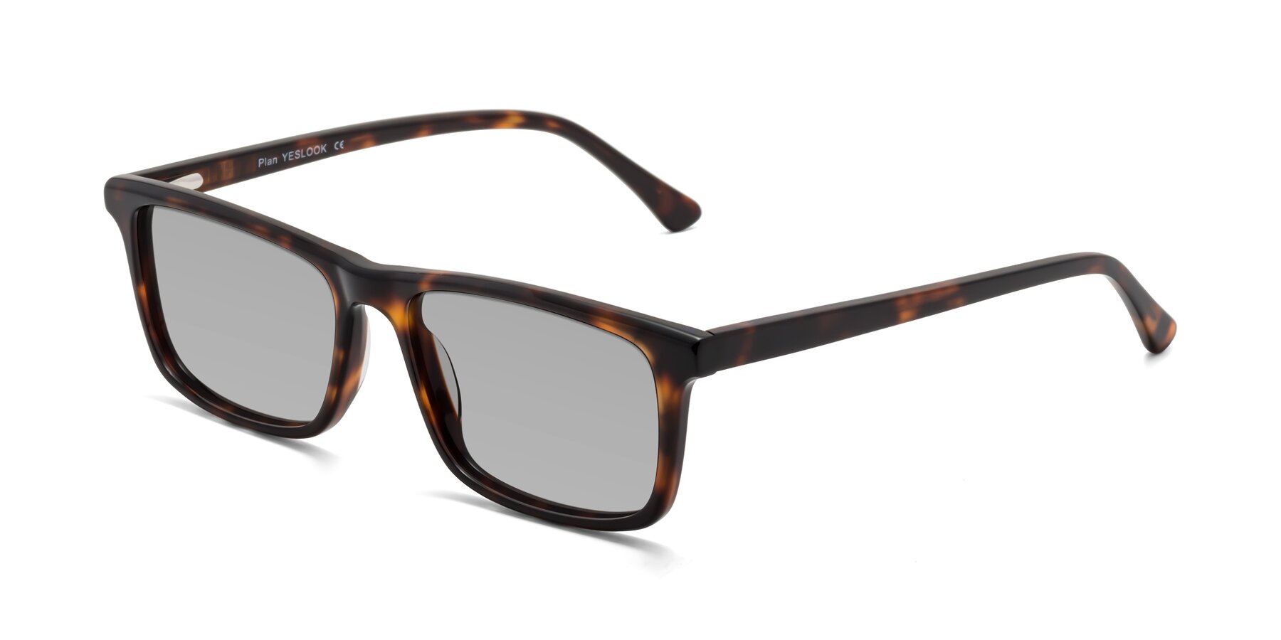 Tortoise Classic Acetate Rectangle Tinted Sunglasses with Light Gray Sunwear Lenses