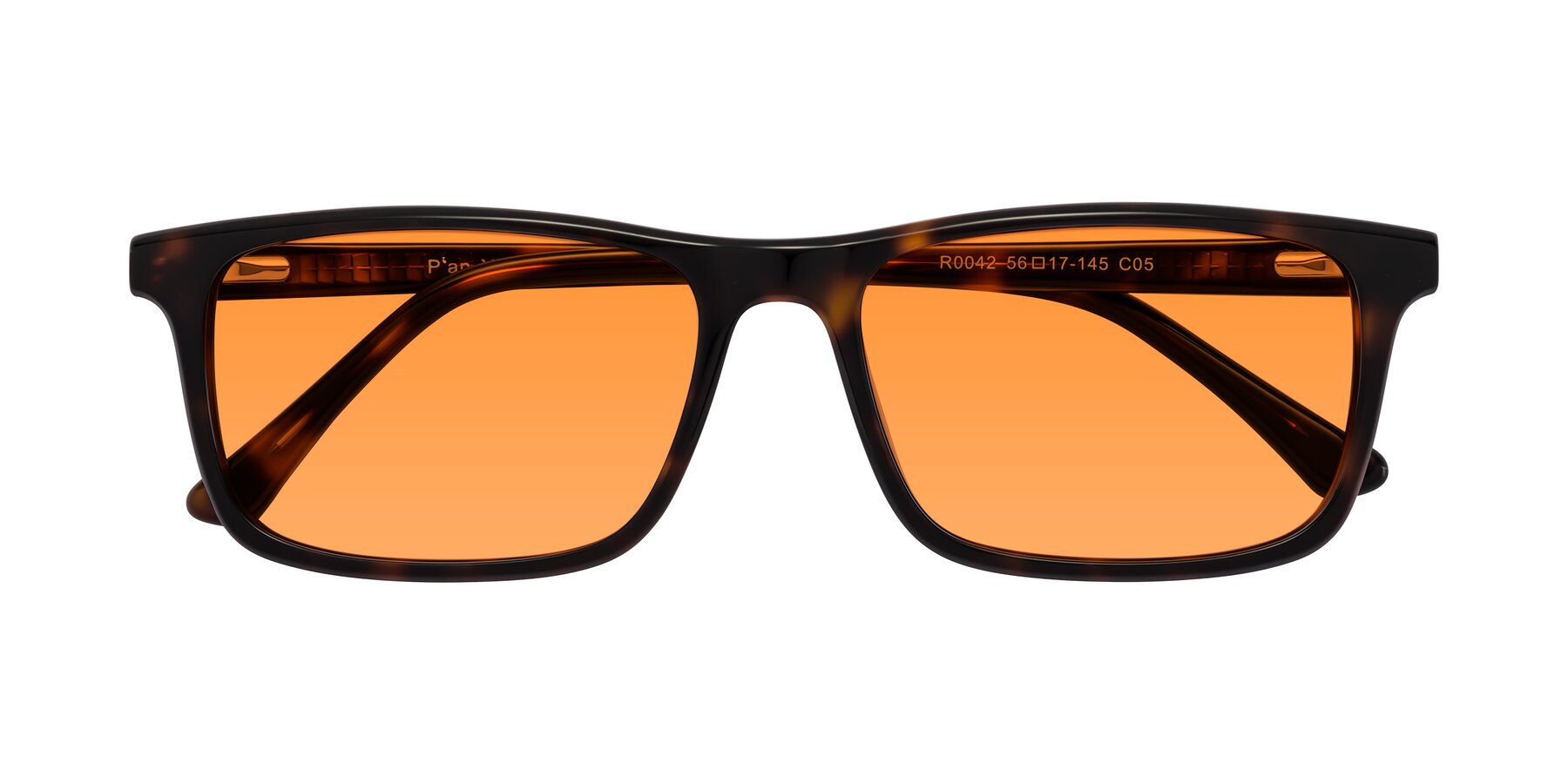 Tortoise Classic Acetate Rectangle Tinted Sunglasses with Orange Sunwear Lenses