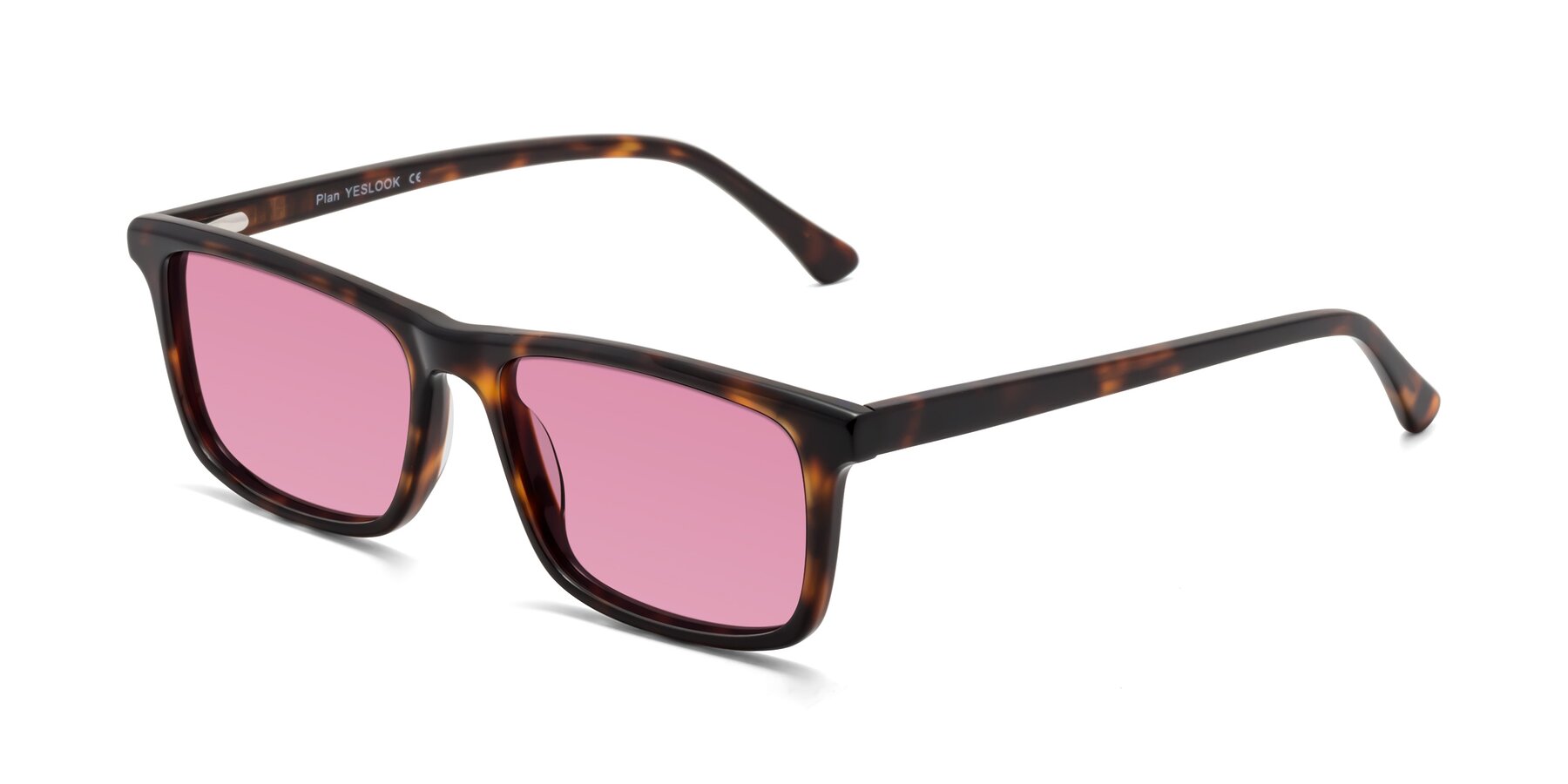 Tortoise Classic Acetate Rectangle Tinted Sunglasses with Medium Wine Sunwear Lenses