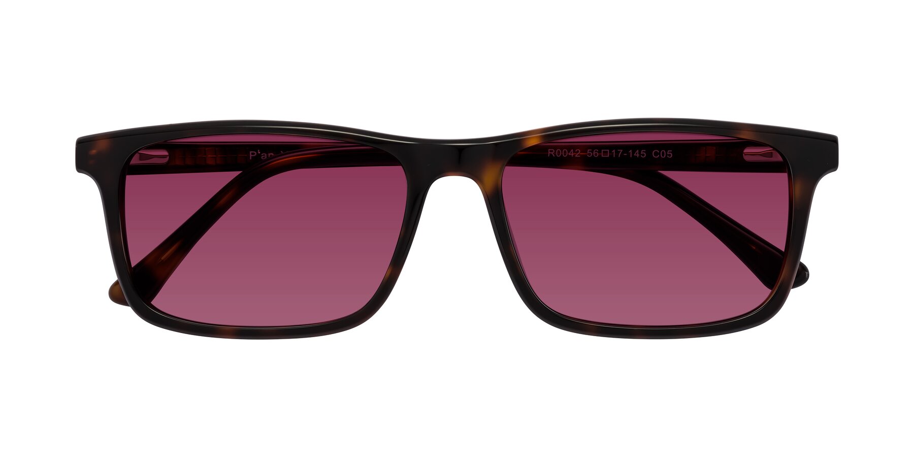 Tortoise Classic Acetate Rectangle Tinted Sunglasses with Wine Sunwear Lenses