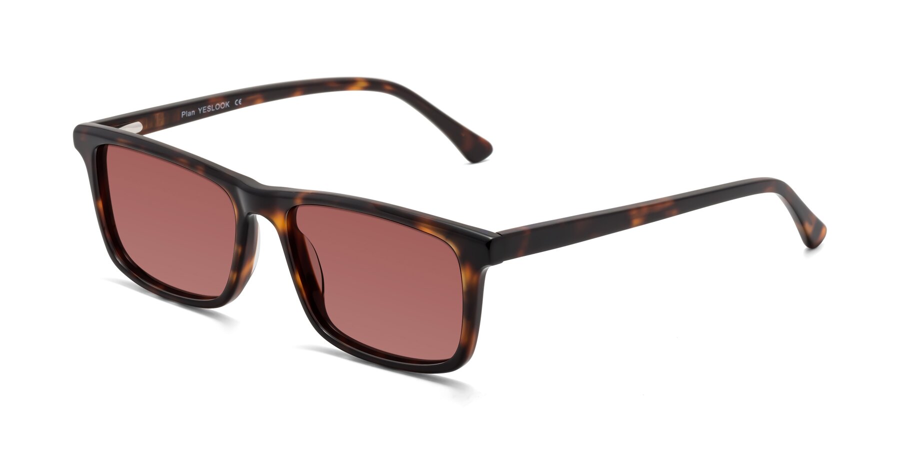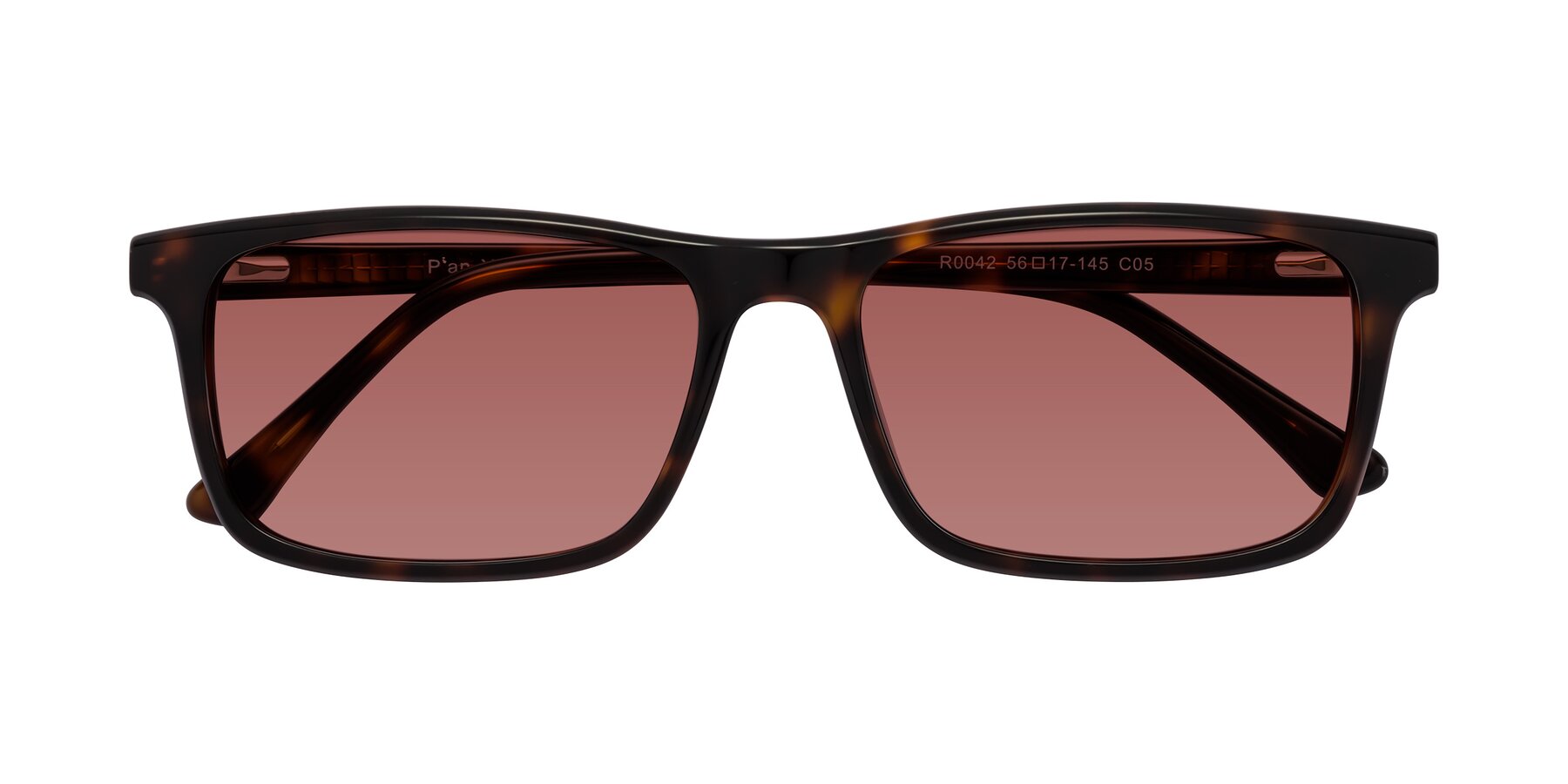 Tortoise Classic Acetate Rectangle Tinted Sunglasses with Garnet Sunwear Lenses