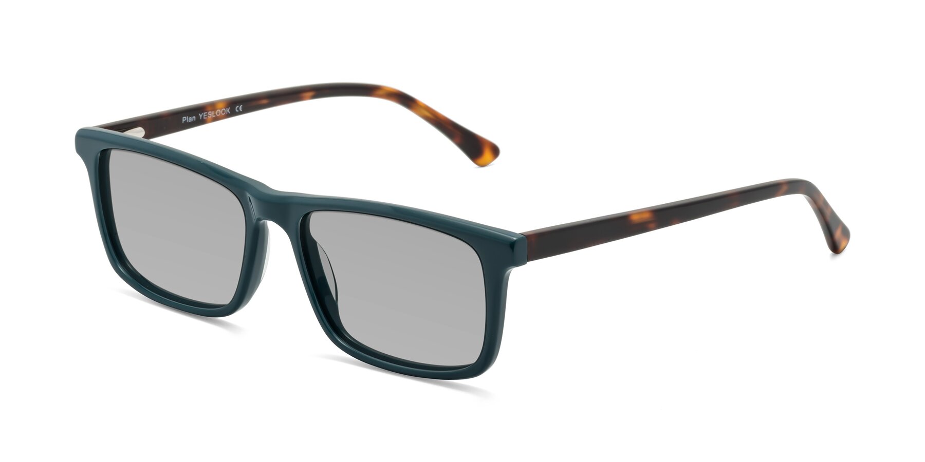 Peacock Blue/Tortoise Classic Acetate Rectangle Tinted Sunglasses with Light Gray Sunwear Lenses