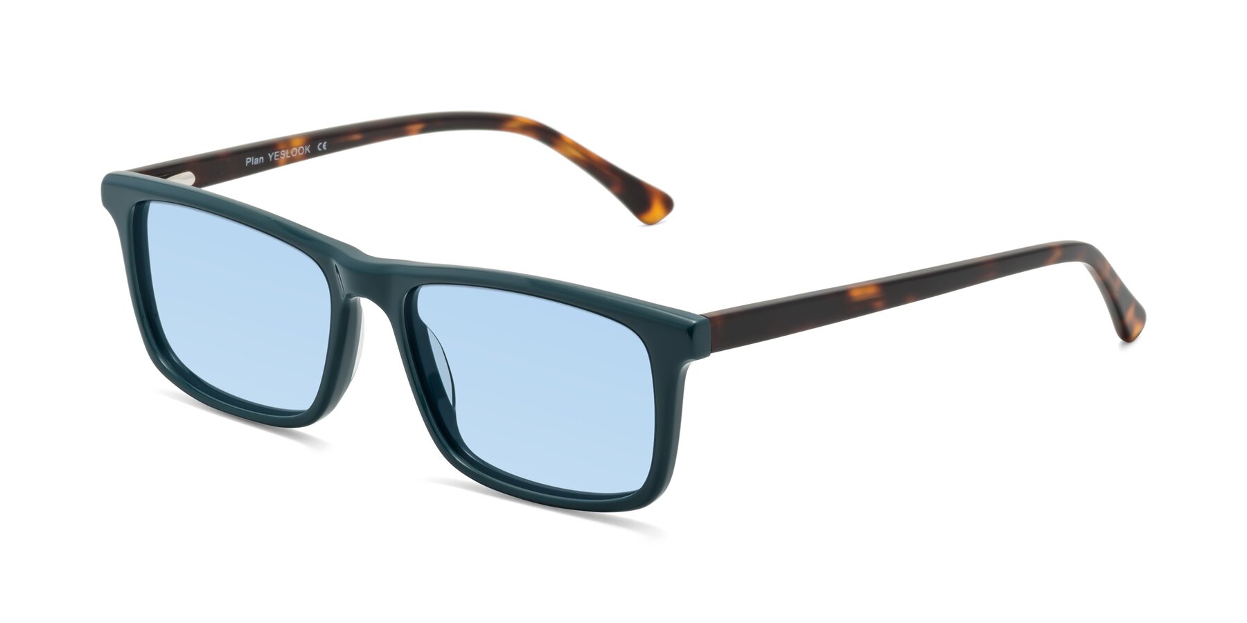 Peacock Blue/Tortoise Classic Acetate Rectangle Tinted Sunglasses with Light Blue Sunwear Lenses