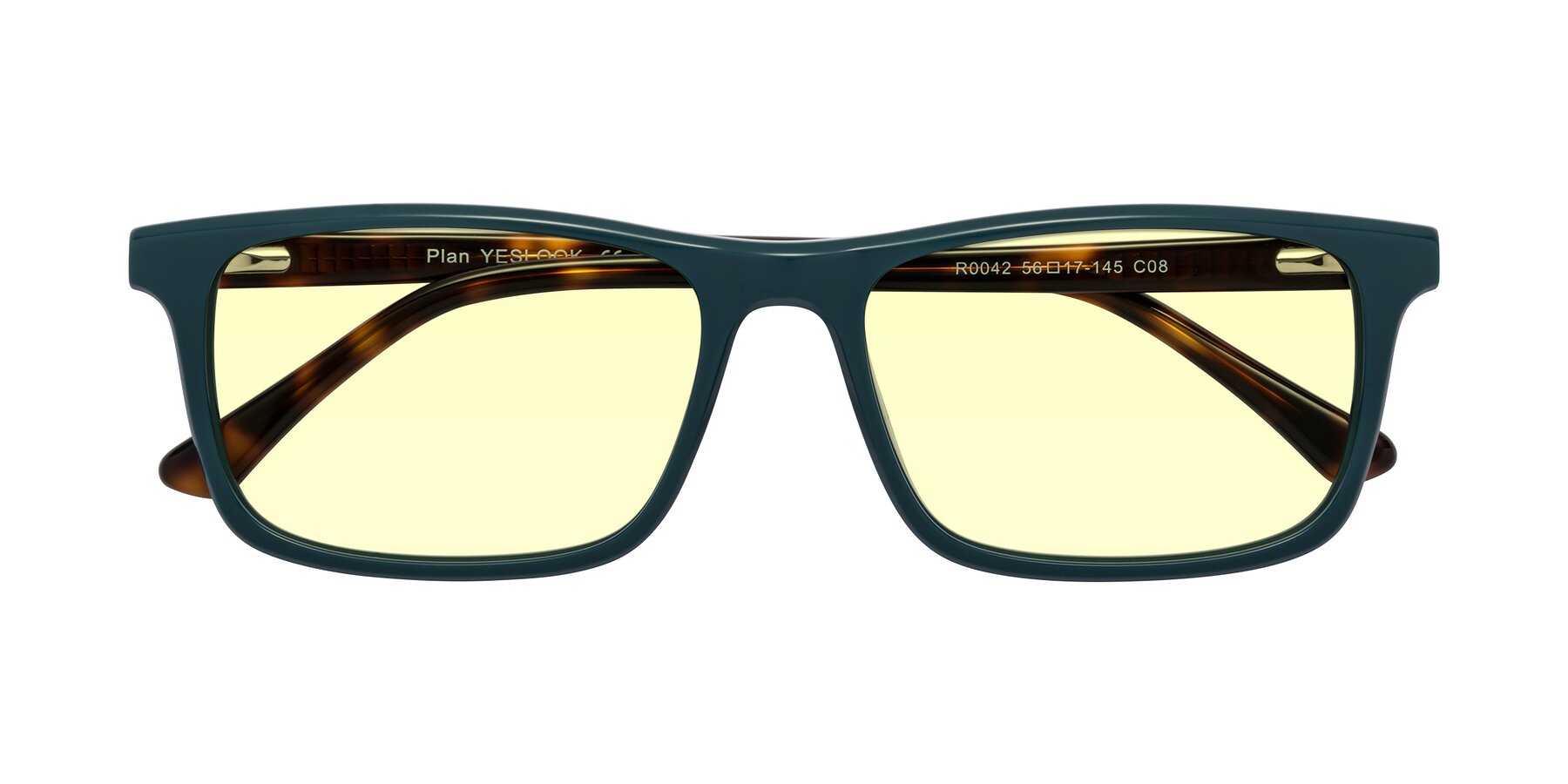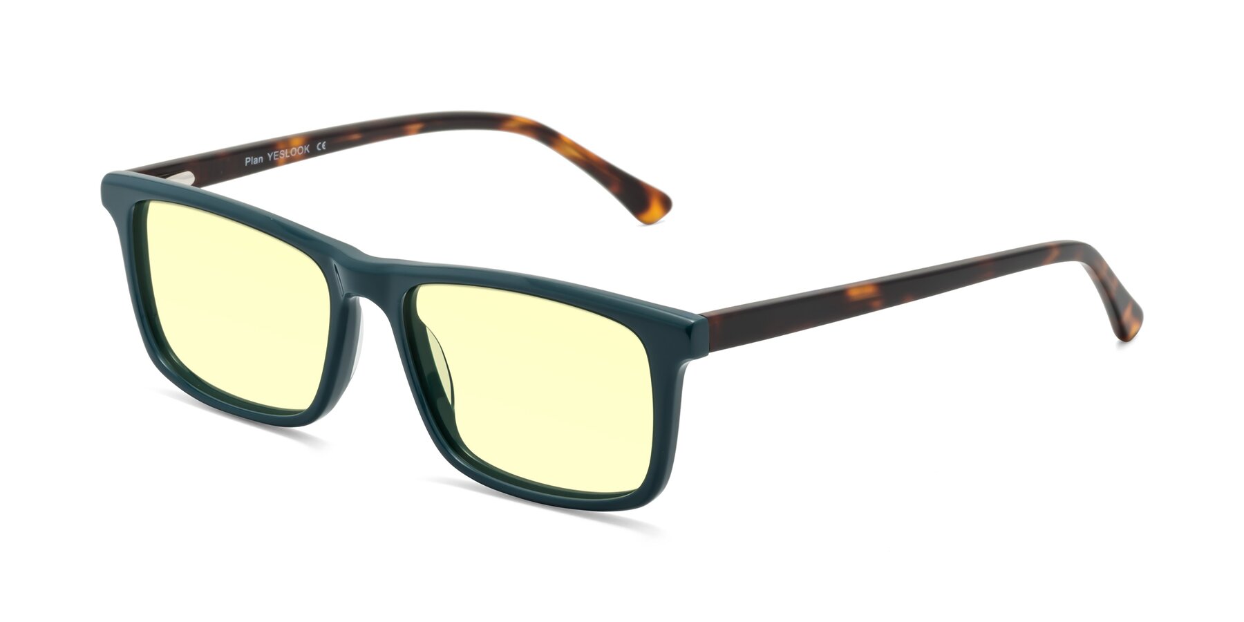 Peacock Blue/Tortoise Classic Acetate Rectangle Tinted Sunglasses with Light Yellow Sunwear Lenses