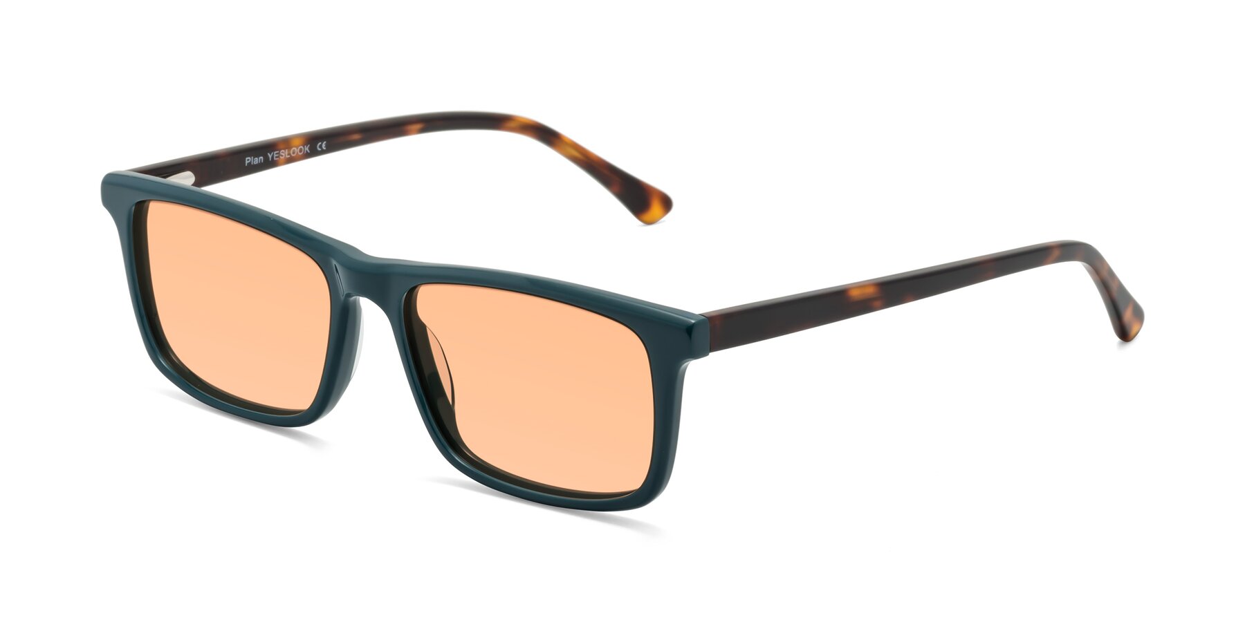 Peacock Blue/Tortoise Classic Acetate Rectangle Tinted Sunglasses with Light Orange Sunwear Lenses