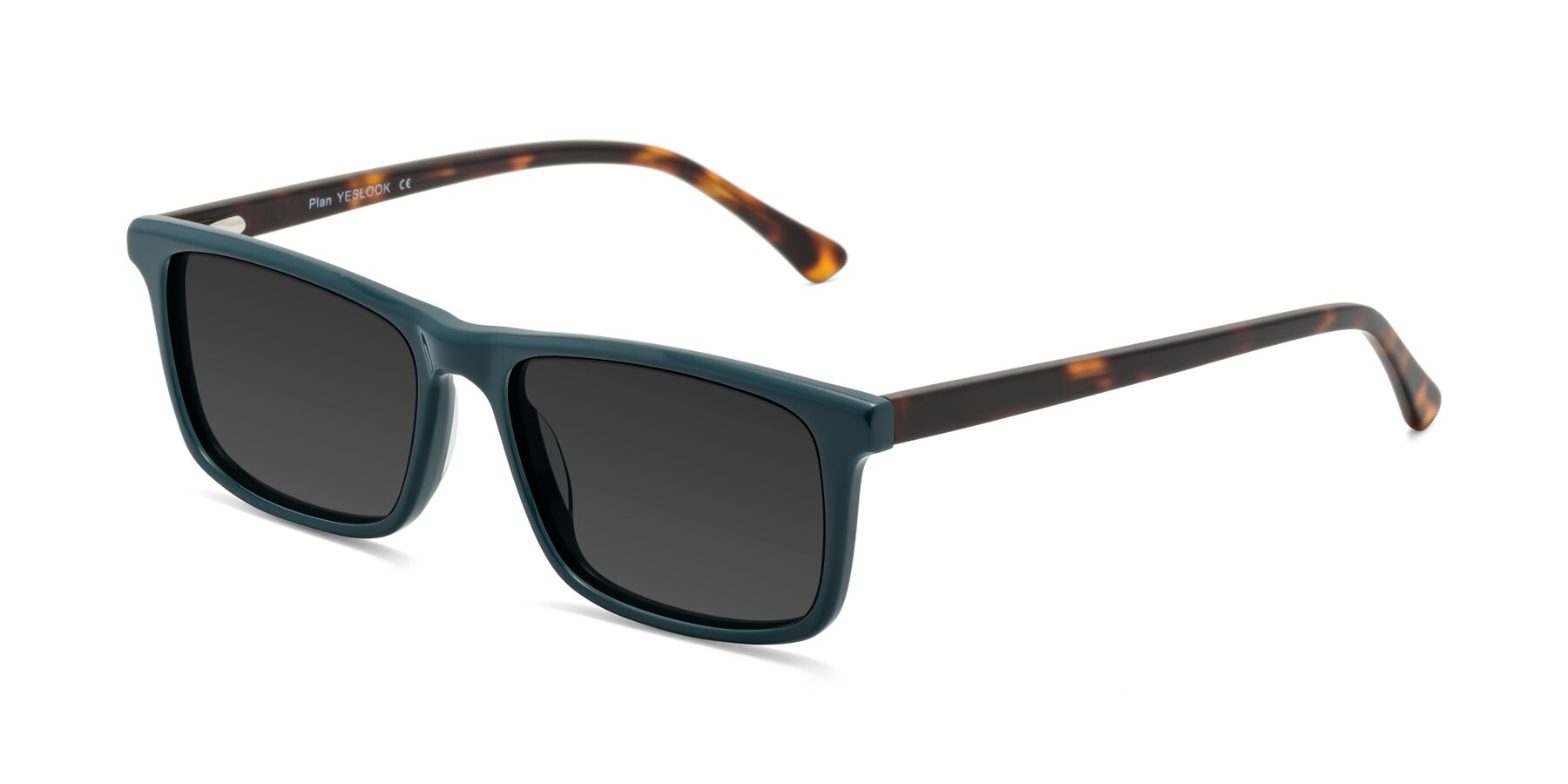 Peacock Blue/Tortoise Classic Acetate Rectangle Tinted Sunglasses with Gray Sunwear Lenses