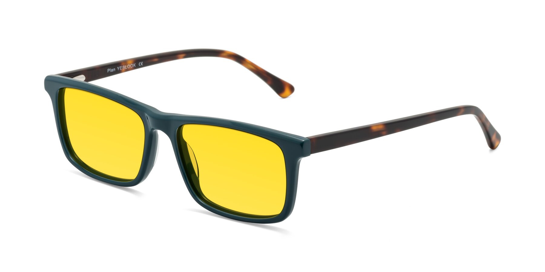 Peacock Blue/Tortoise Classic Acetate Rectangle Tinted Sunglasses with Yellow Sunwear Lenses