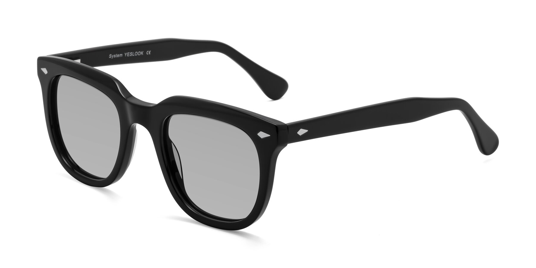 Black Thick Acetate Square Tinted Sunglasses with Light Gray Sunwear Lenses