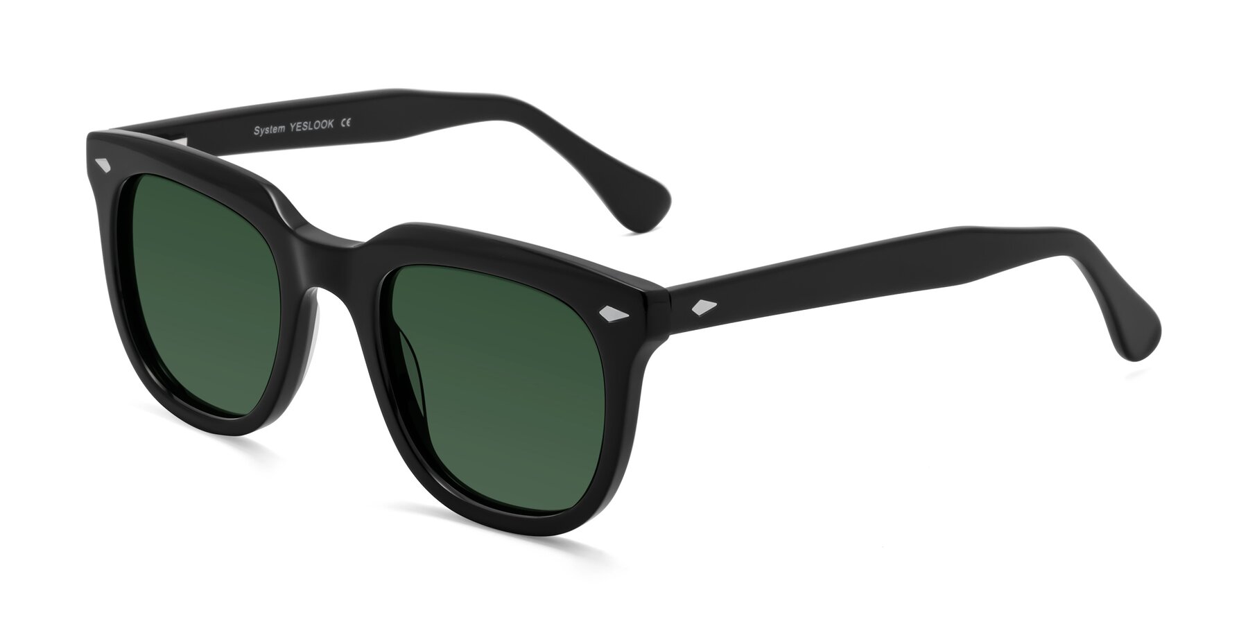Black Thick Acetate Square Tinted Sunglasses with Green Sunwear Lenses