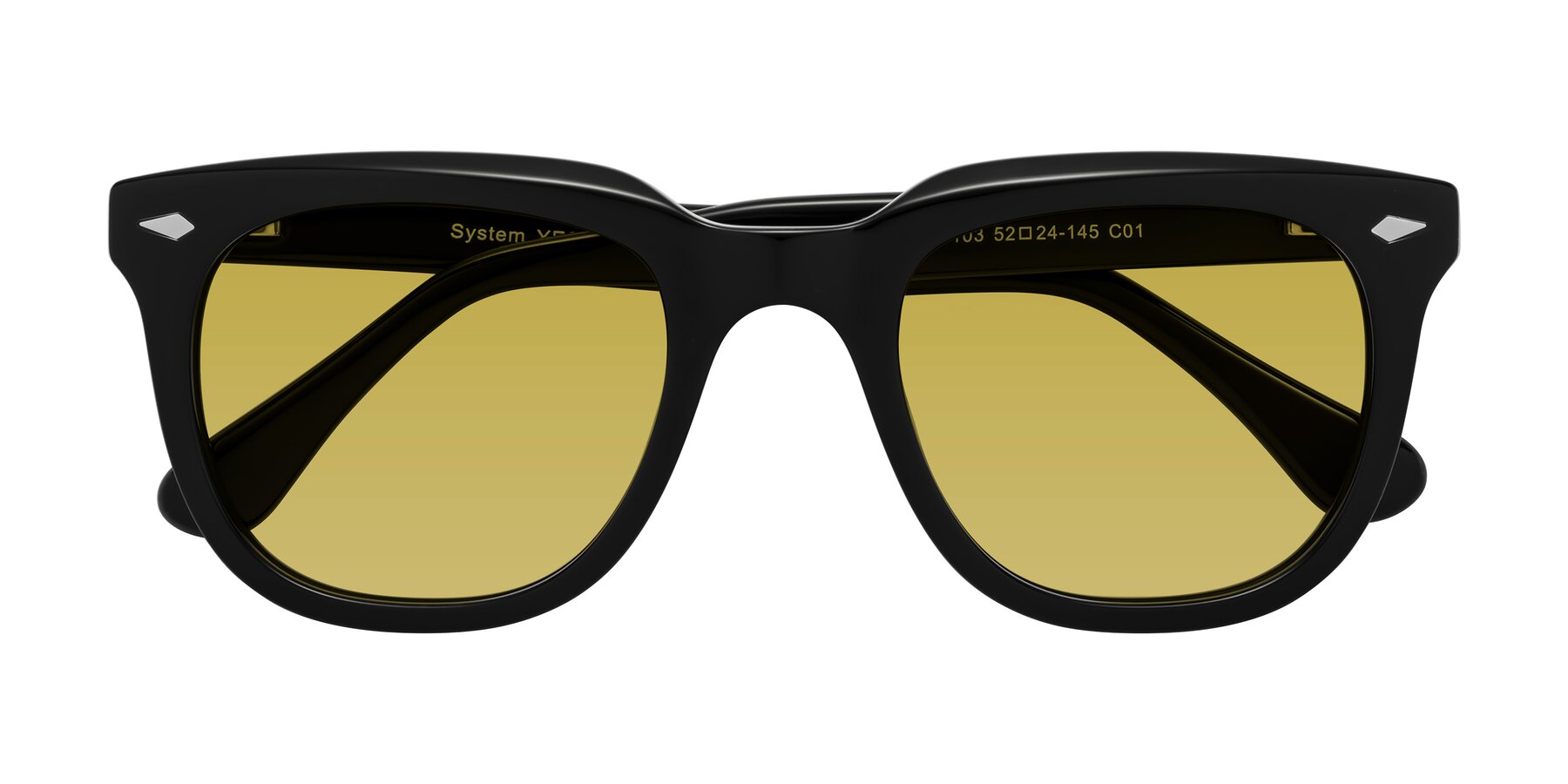 Black Thick Acetate Square Tinted Sunglasses with Champagne Sunwear Lenses