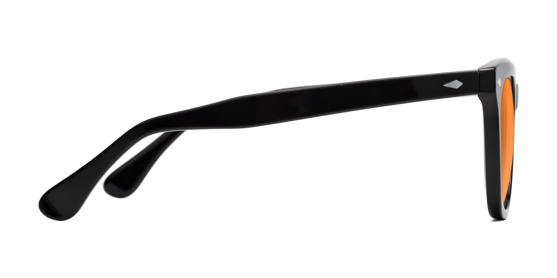 Black Thick Acetate Square Tinted Sunglasses with Orange Sunwear Lenses