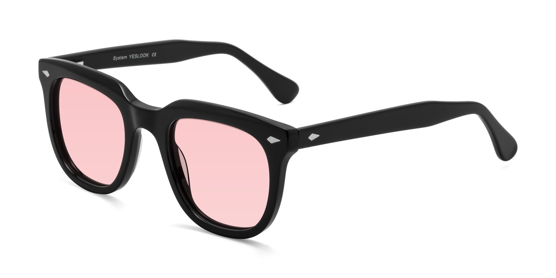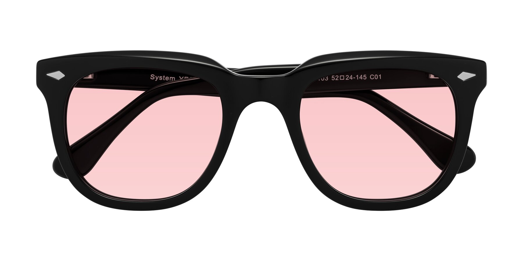 Black Thick Acetate Square Tinted Sunglasses with Light Garnet Sunwear Lenses