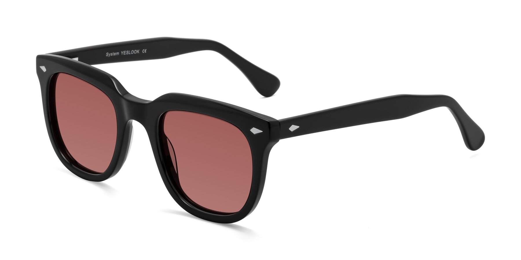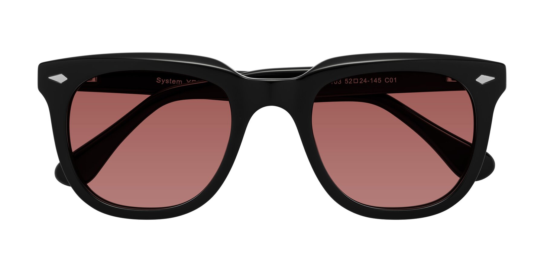 Black Thick Acetate Square Tinted Sunglasses with Garnet Sunwear Lenses