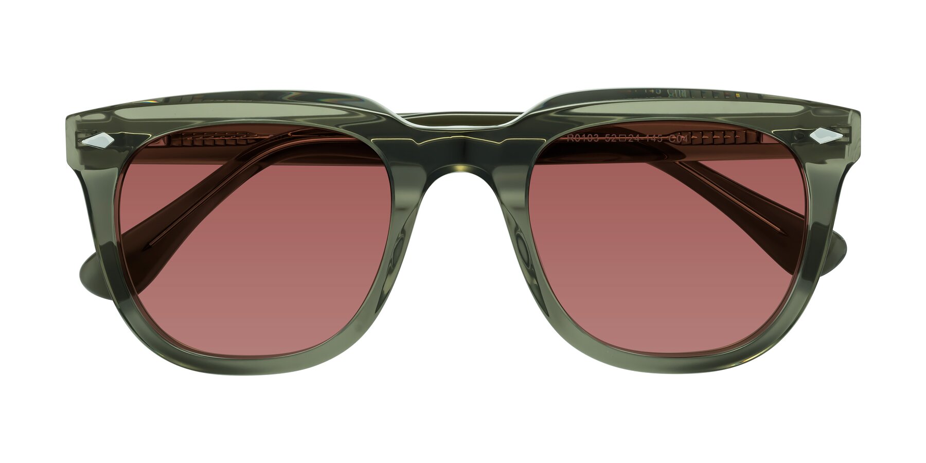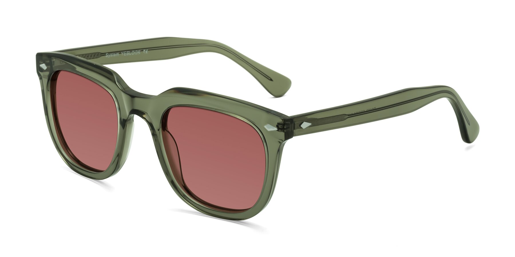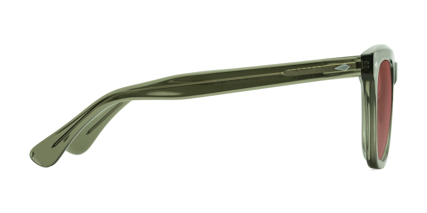 Grayish Green Thick Acetate Square Tinted Sunglasses with Garnet Sunwear Lenses
