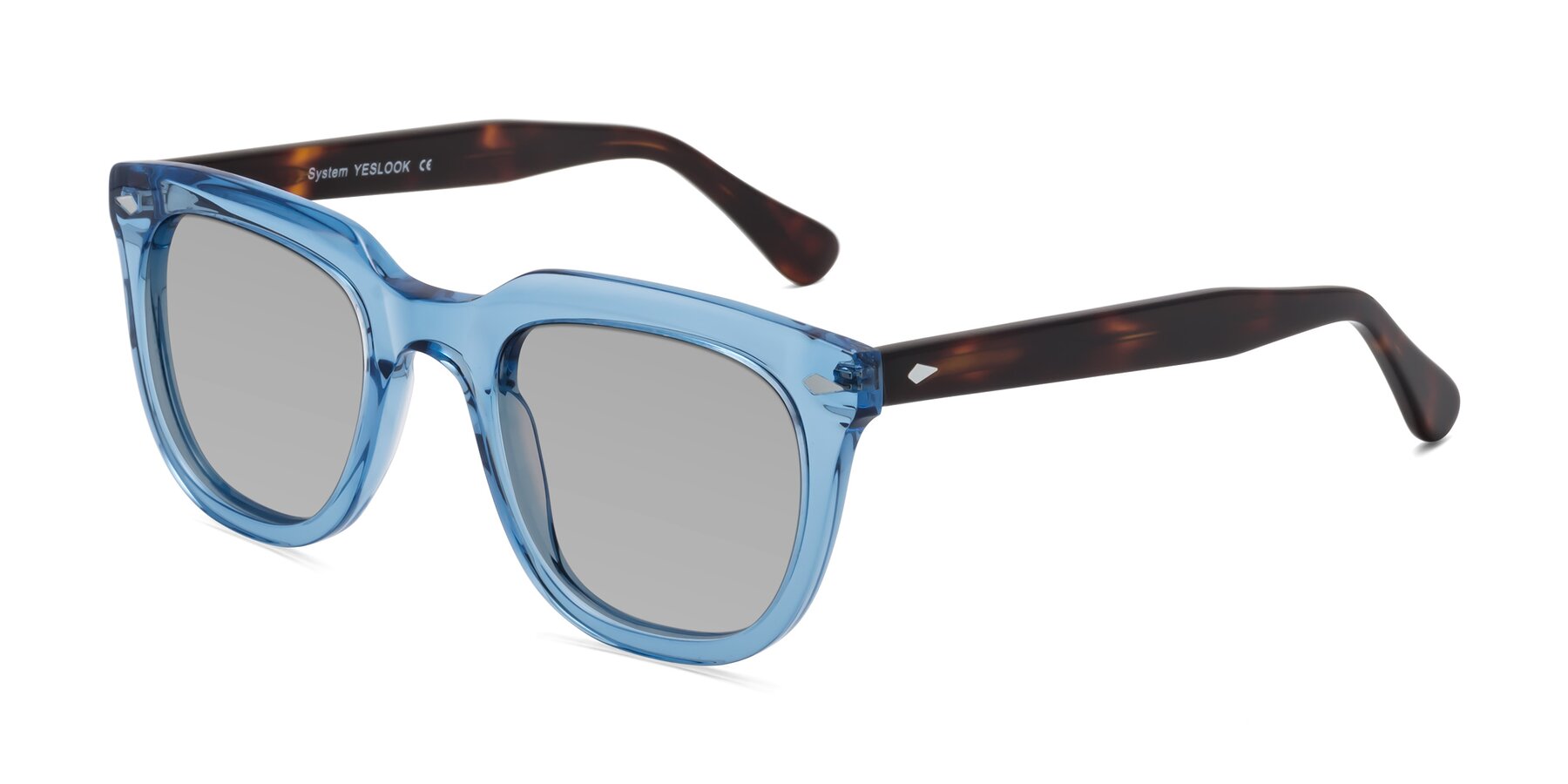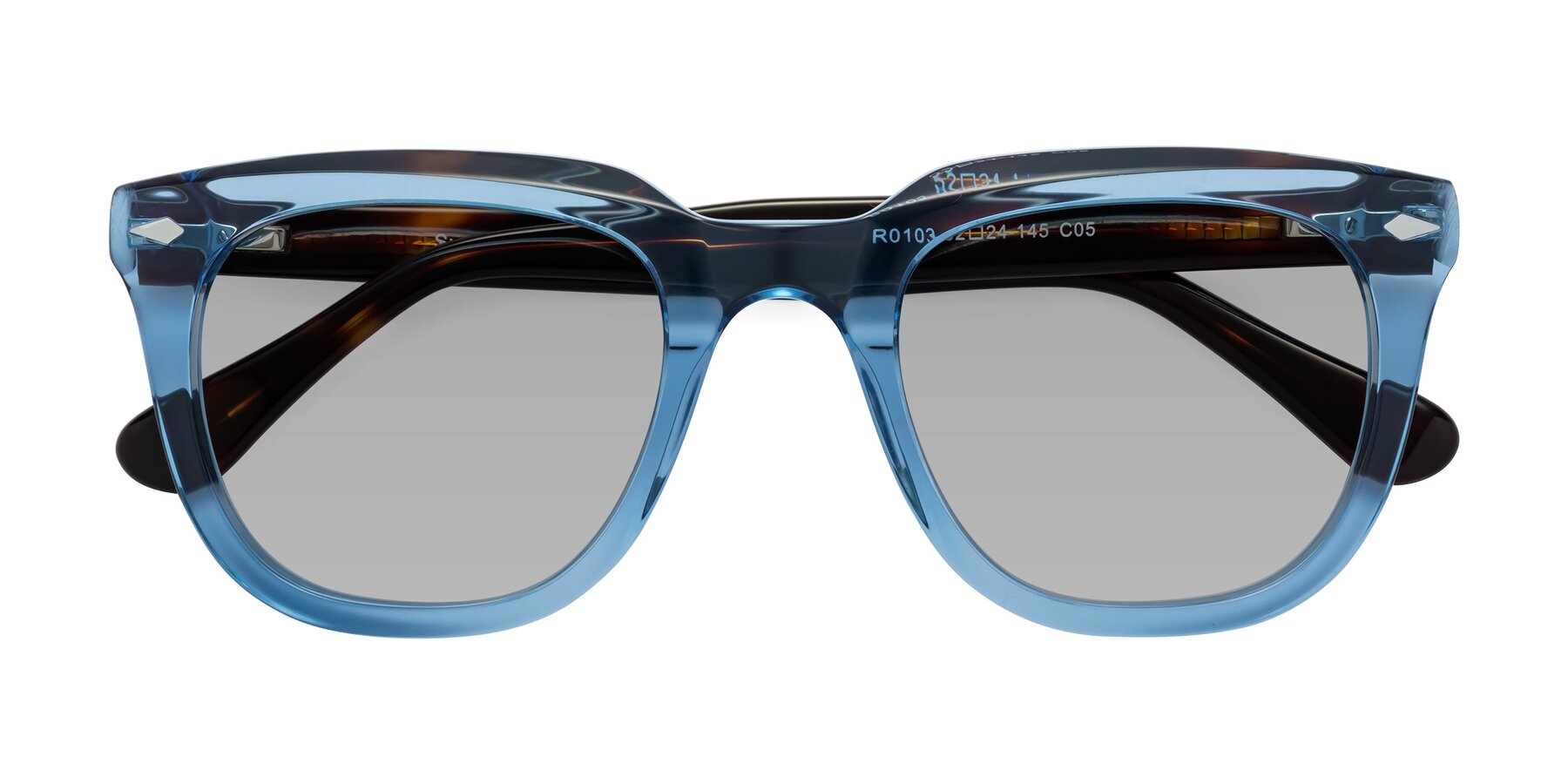 Light Blue/Tortoise Thick Acetate Square Tinted Sunglasses with Light Gray Sunwear Lenses