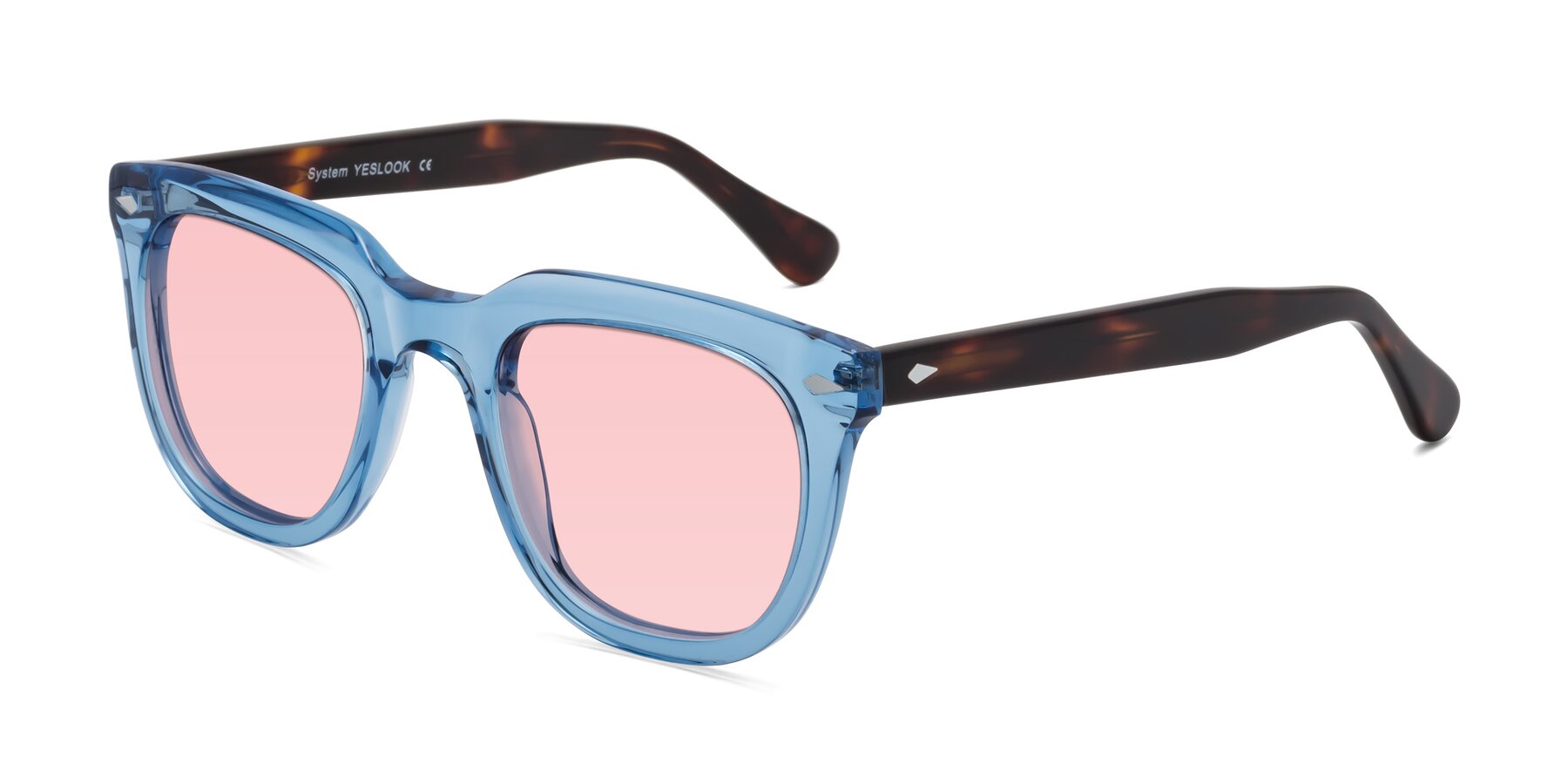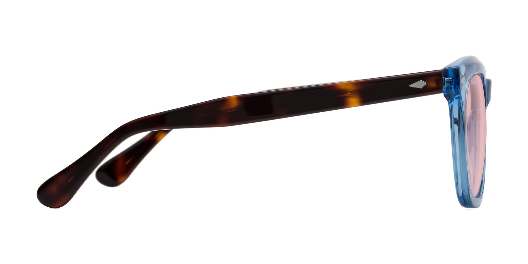 Light Blue/Tortoise Thick Acetate Square Tinted Sunglasses with Light Garnet Sunwear Lenses