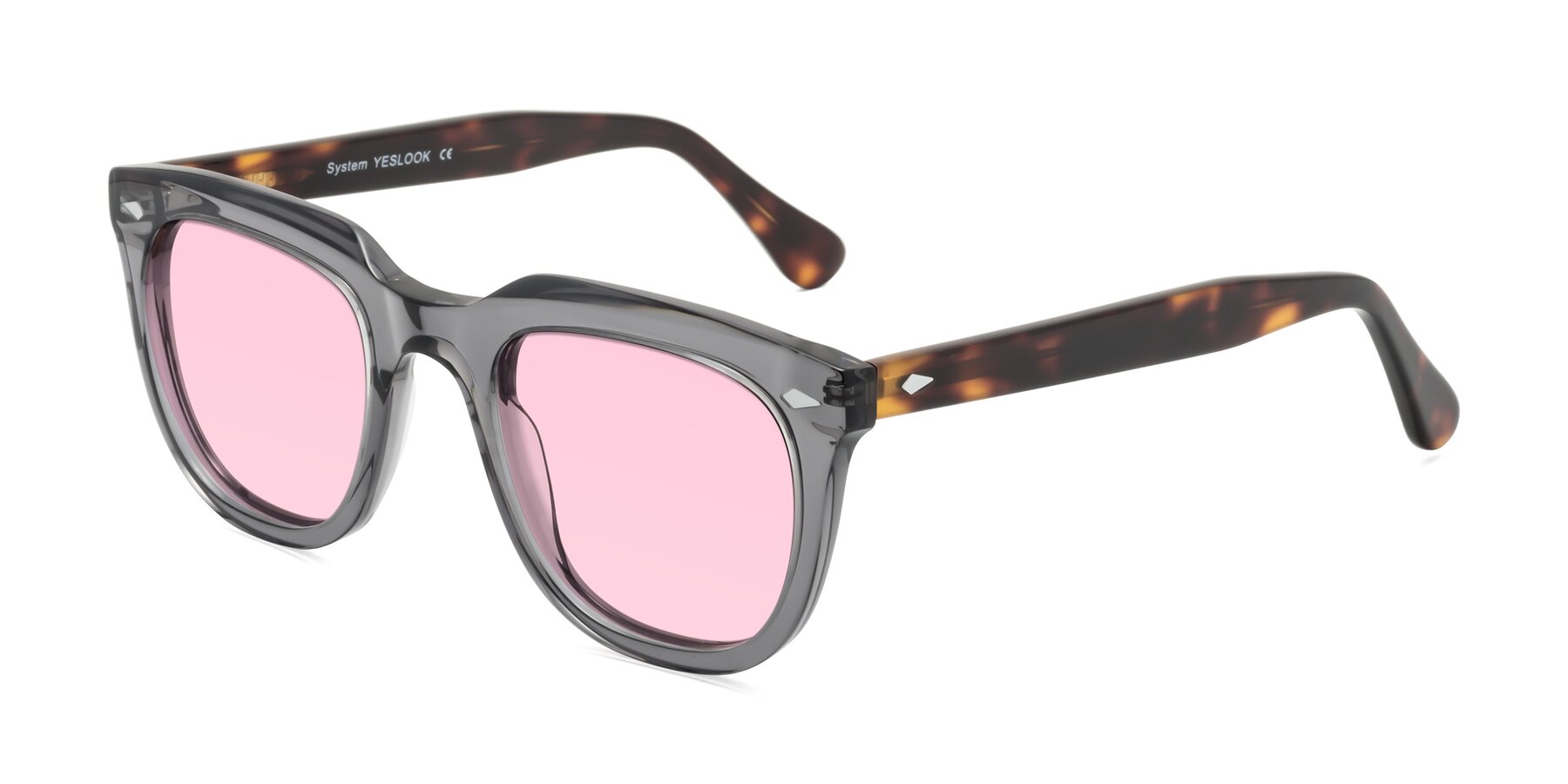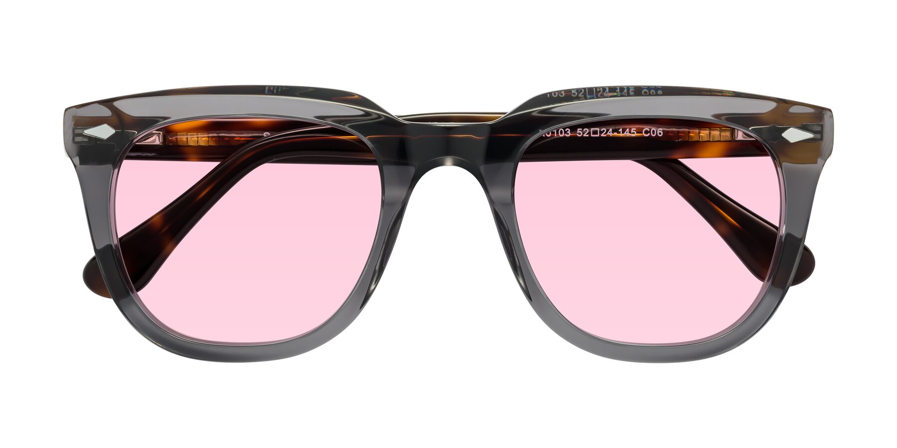 Light Gray/Tortoise Thick Acetate Square Tinted Sunglasses with Light Pink Sunwear Lenses