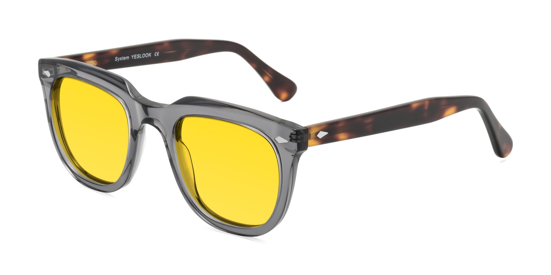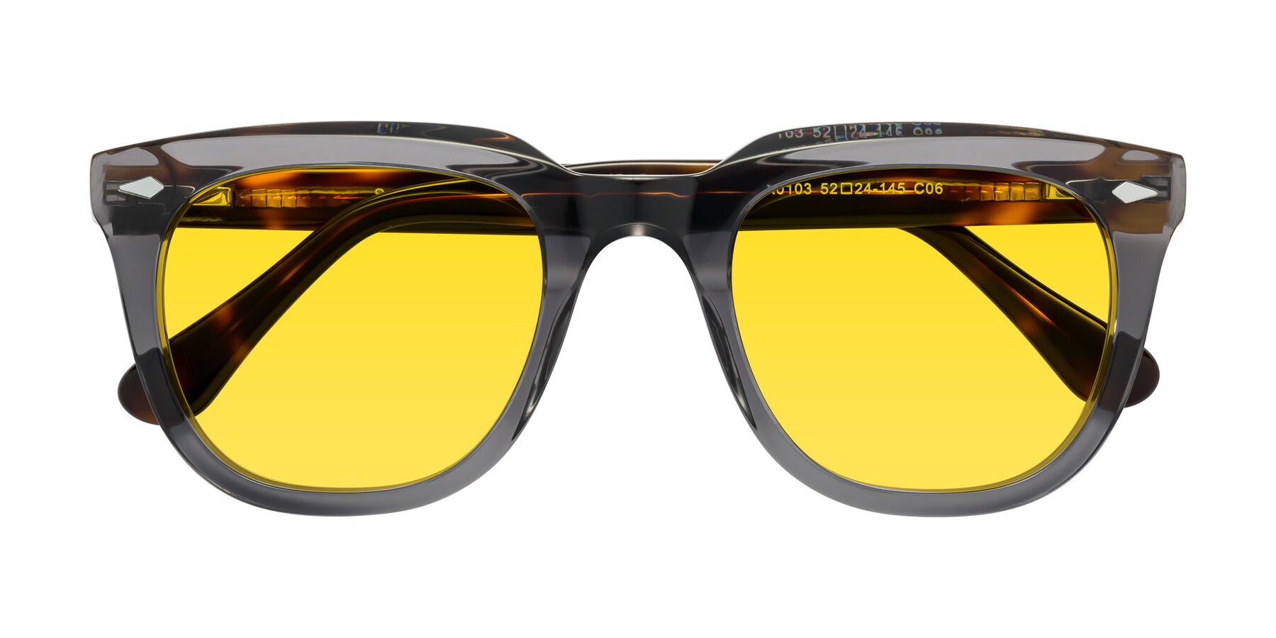 Light Gray/Tortoise Thick Acetate Square Tinted Sunglasses with Yellow Sunwear Lenses