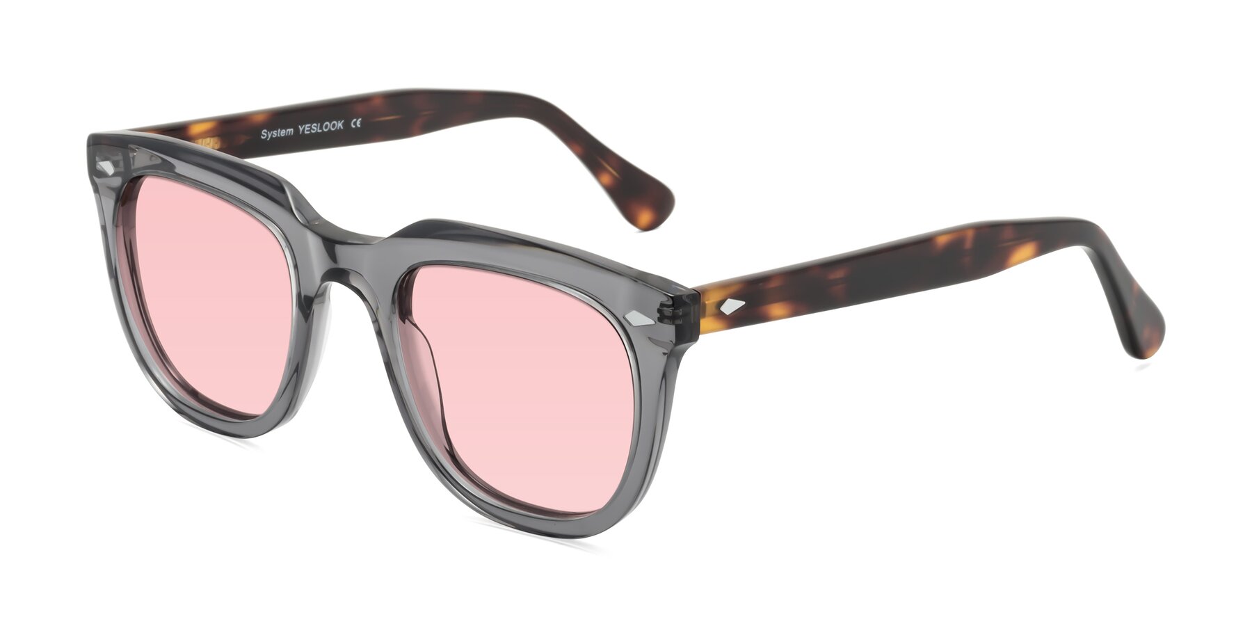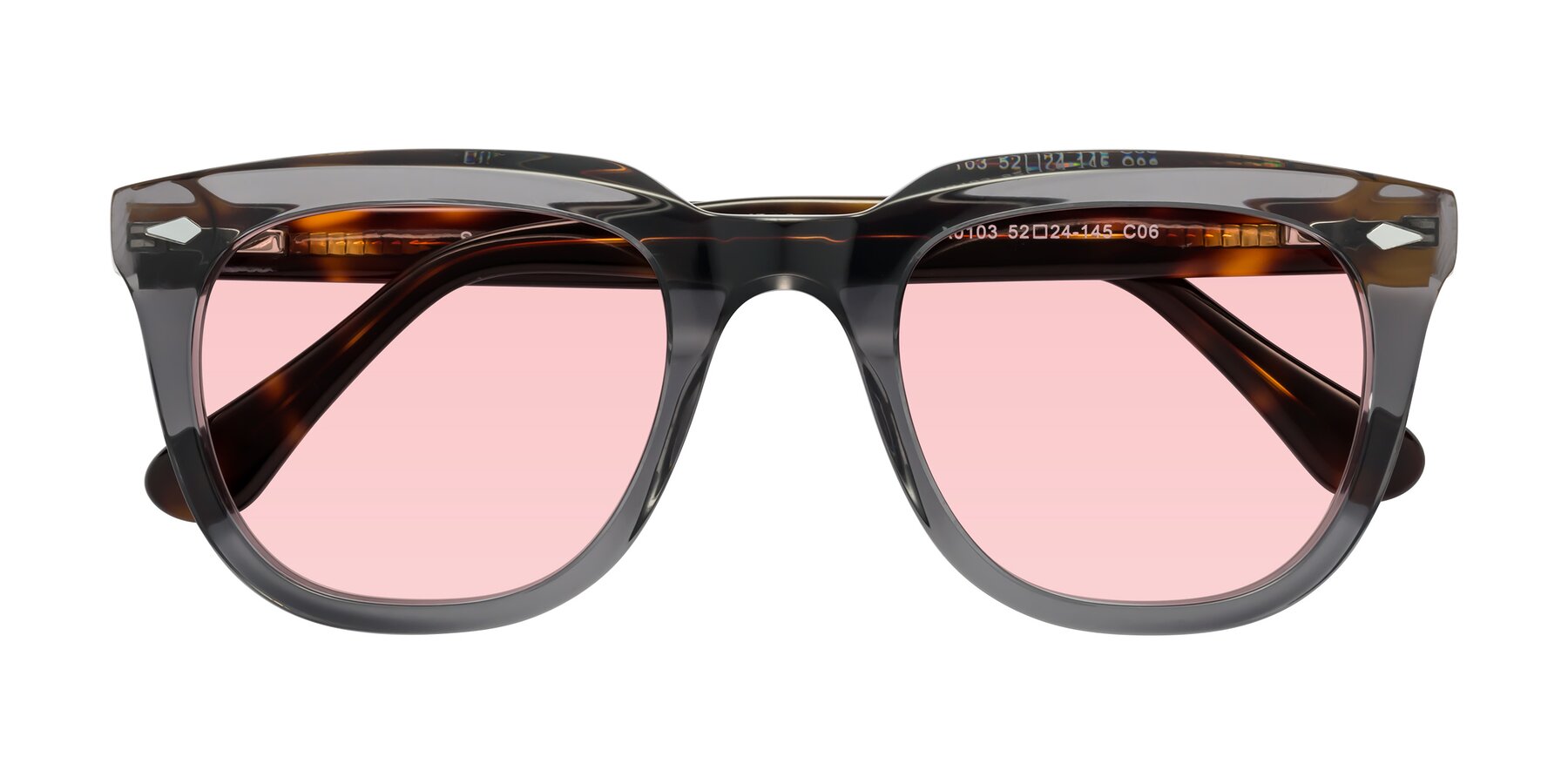Light Gray/Tortoise Thick Acetate Square Tinted Sunglasses with Light Garnet Sunwear Lenses
