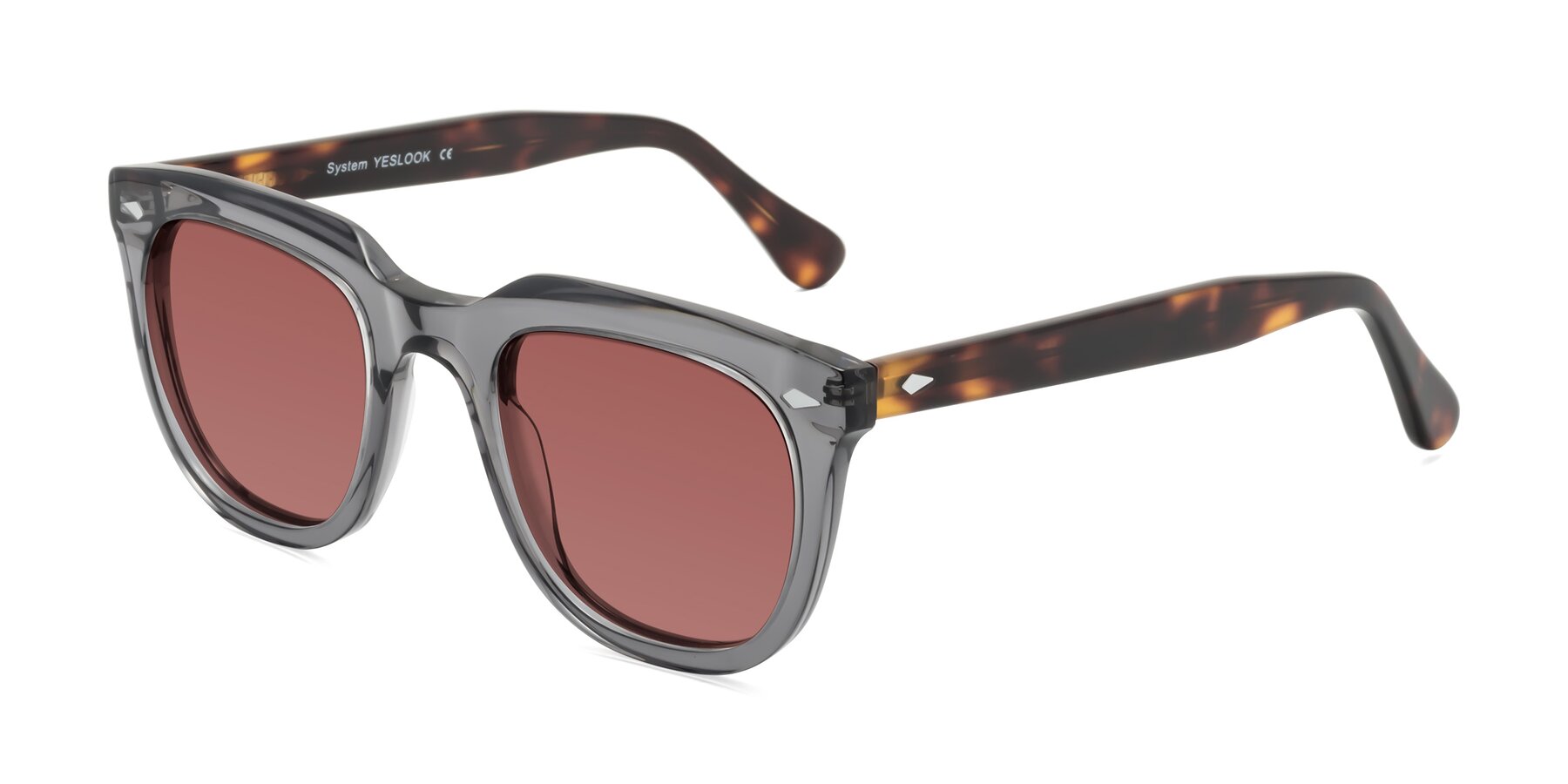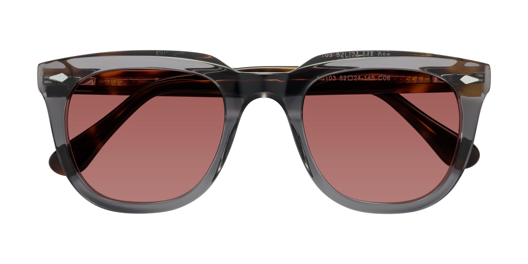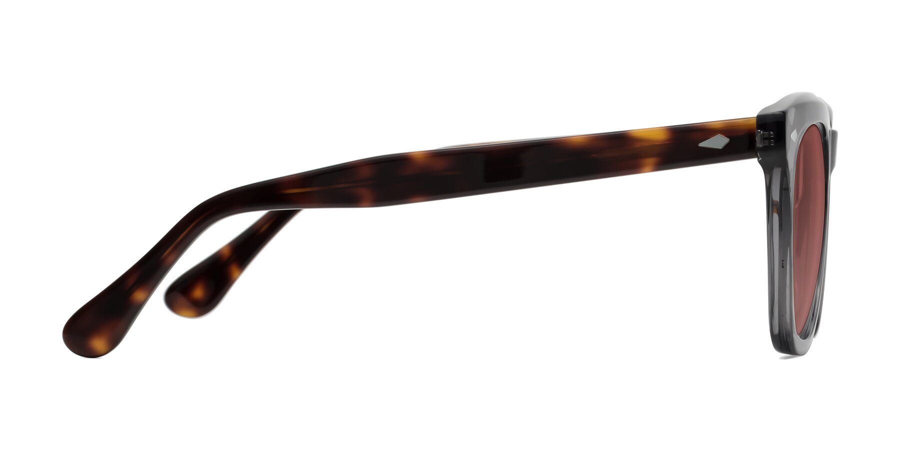 Light Gray/Tortoise Thick Acetate Square Tinted Sunglasses with Garnet Sunwear Lenses