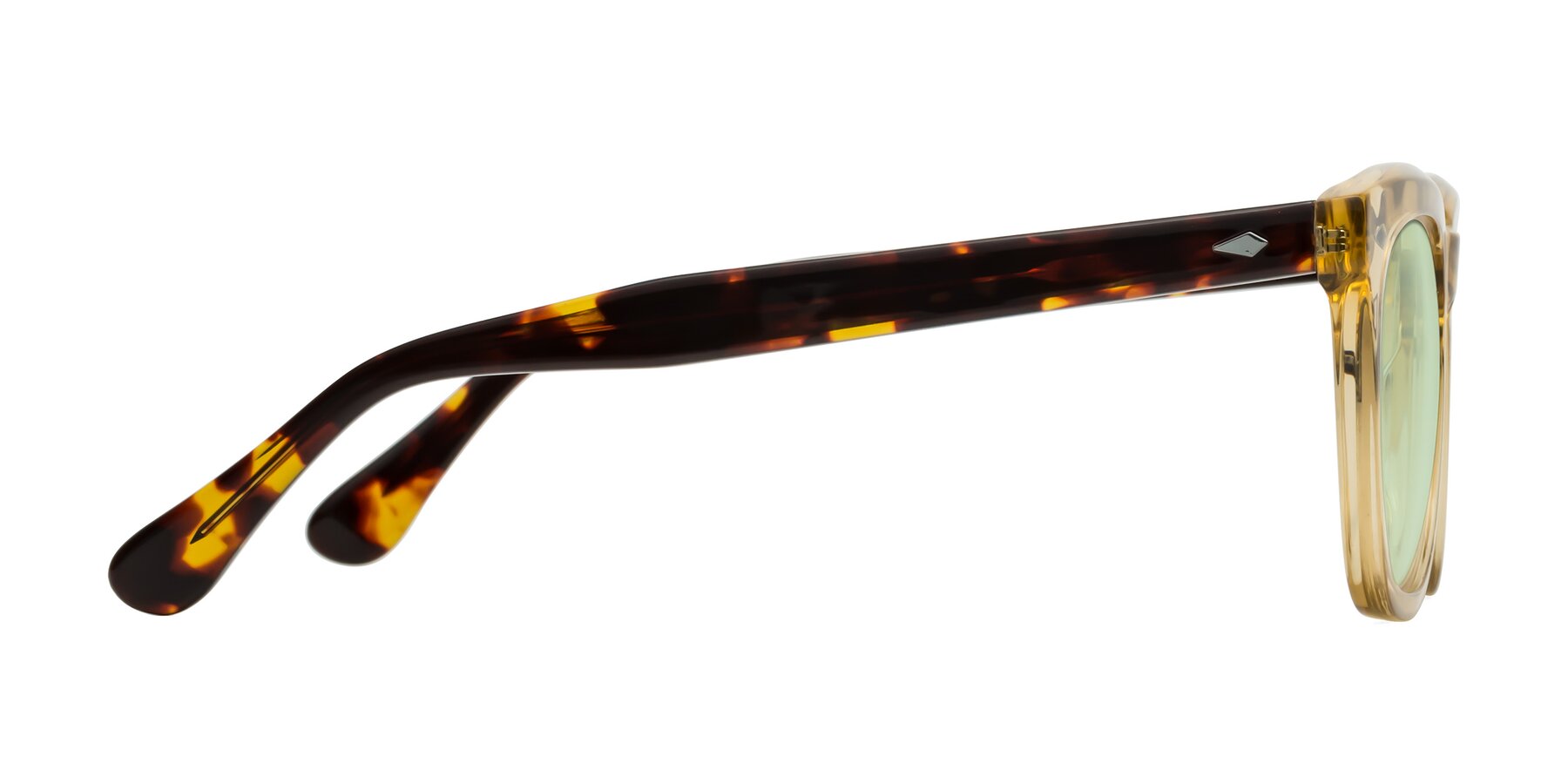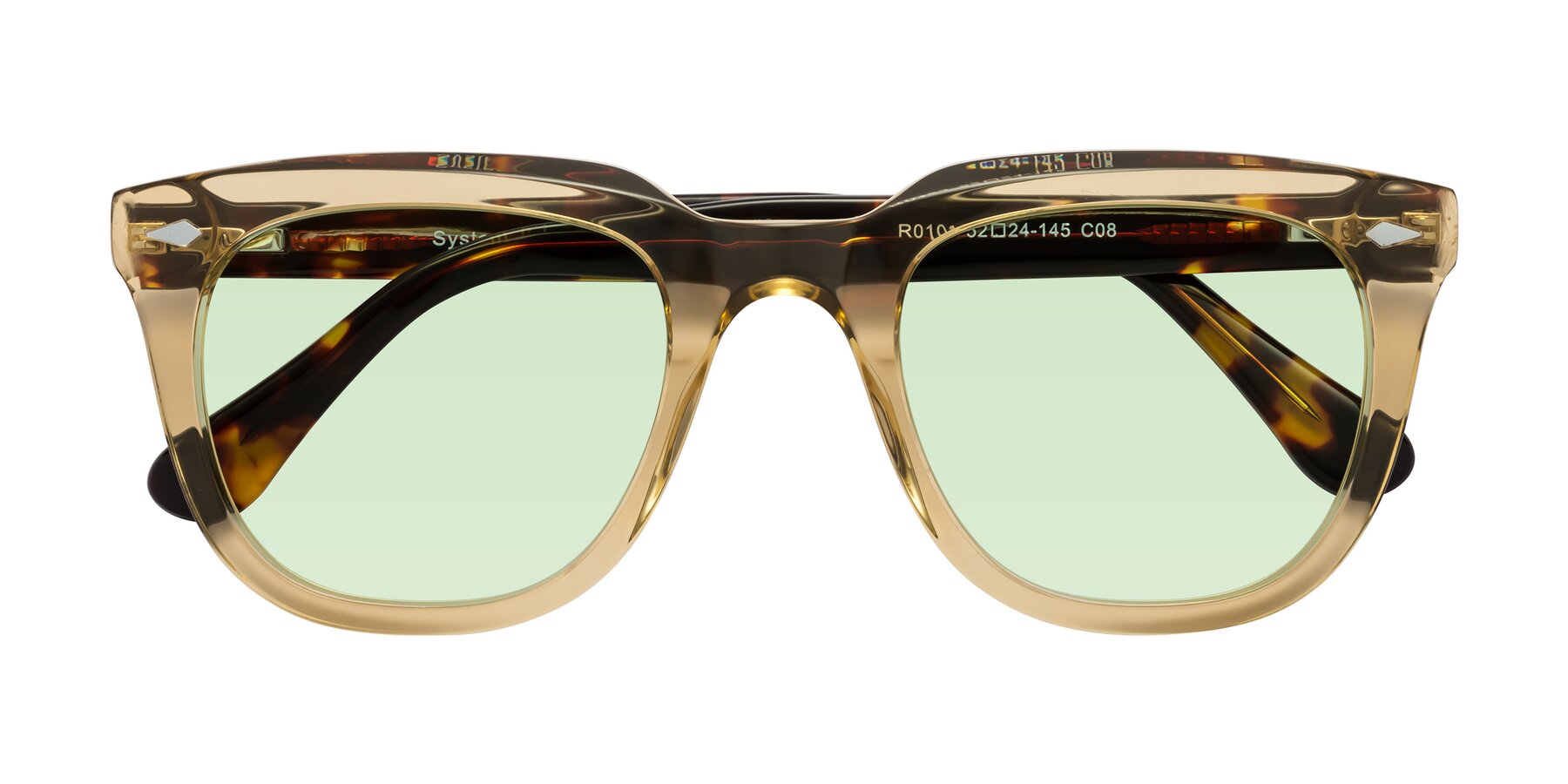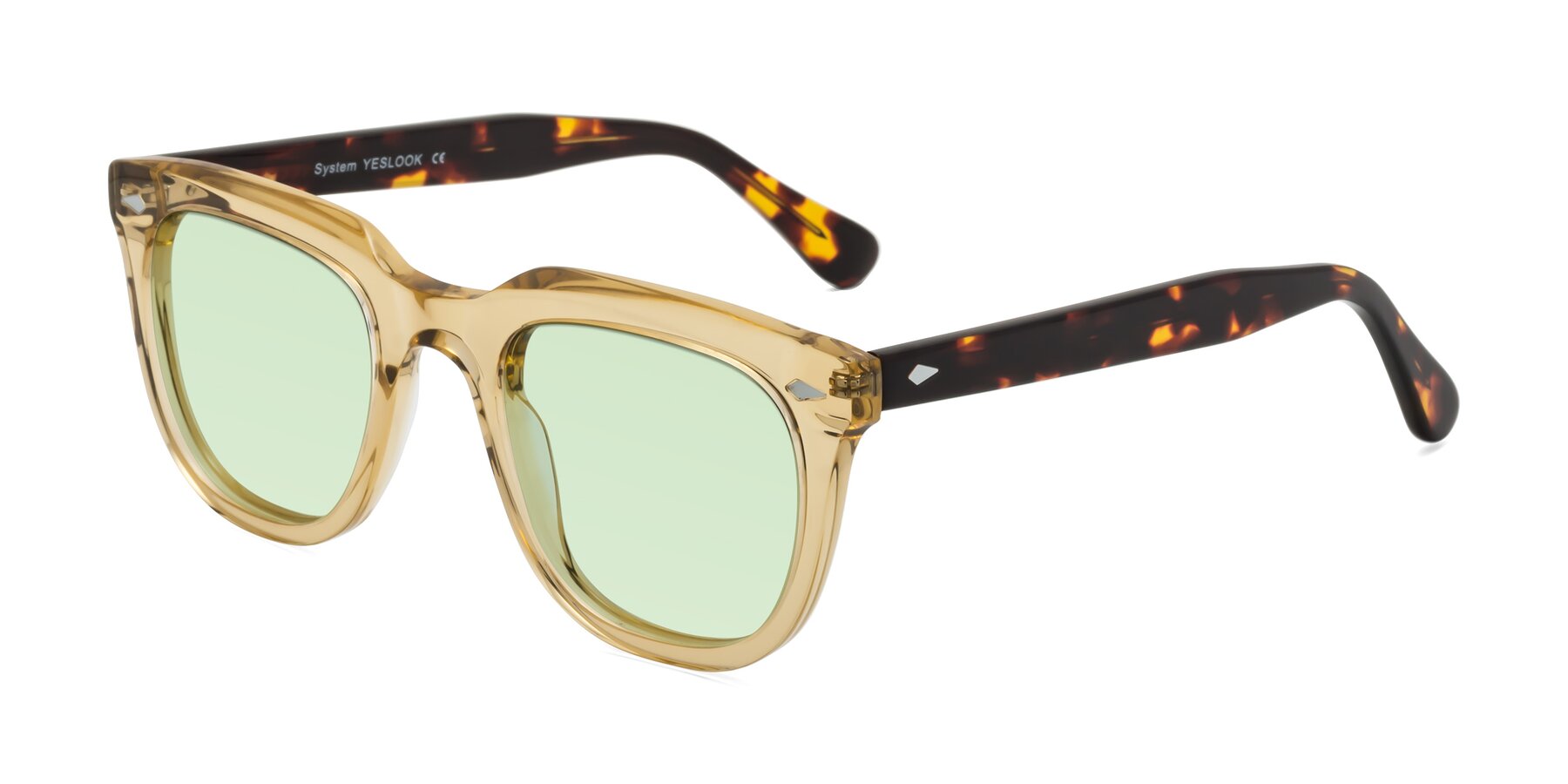 Champagne/Tortoise Thick Acetate Square Tinted Sunglasses with Light Green Sunwear Lenses