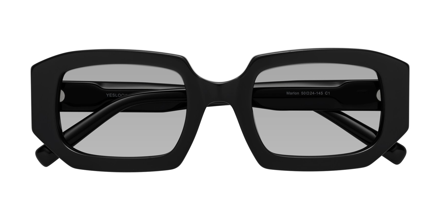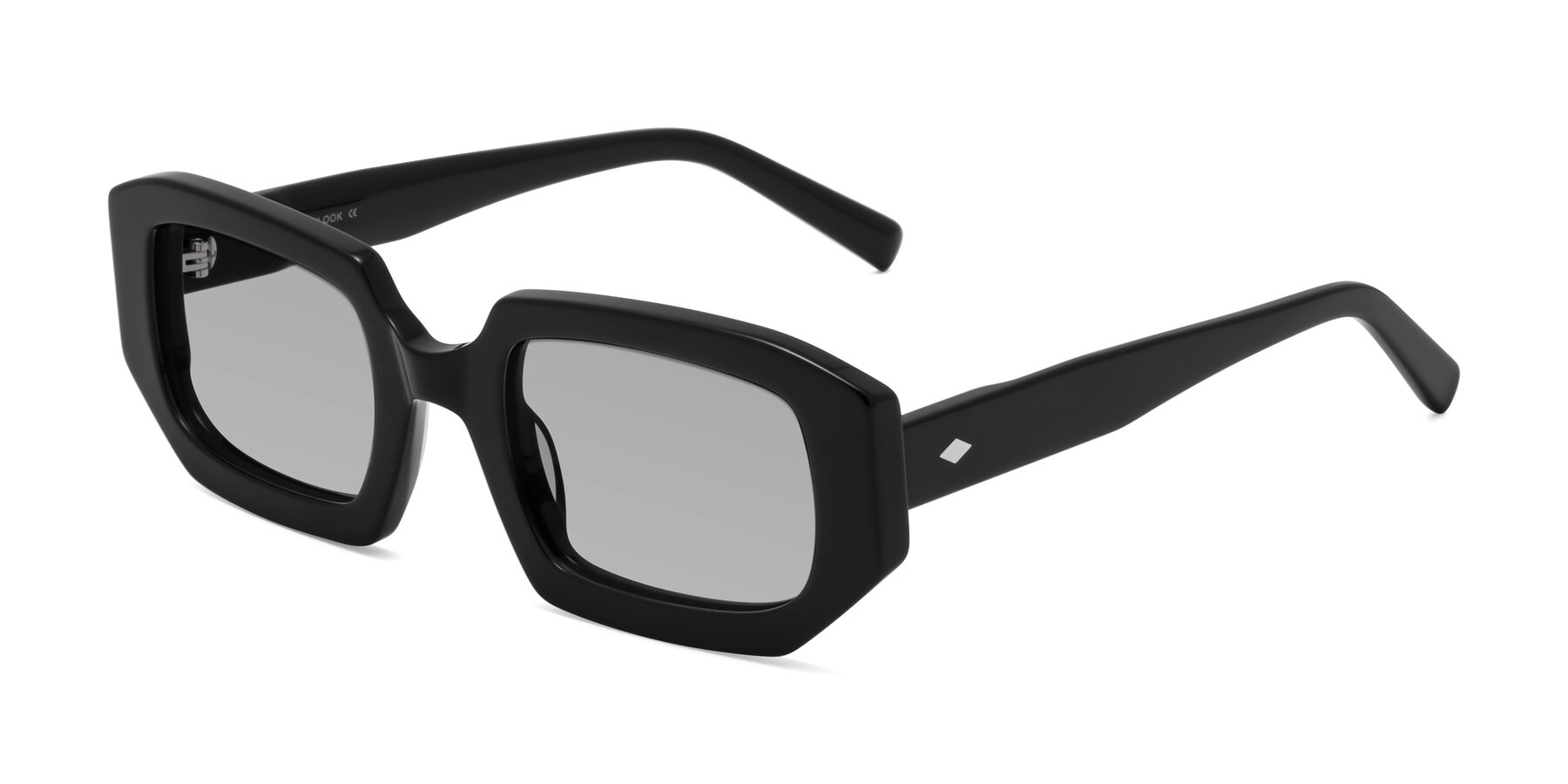 Black Thick Hipster Rectangle Tinted Sunglasses with Light Gray Sunwear Lenses