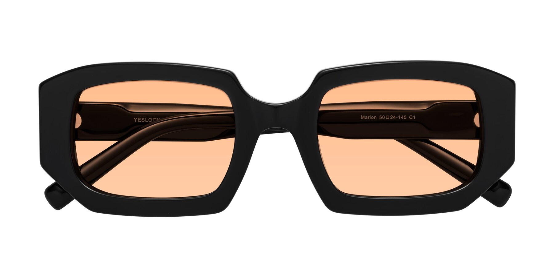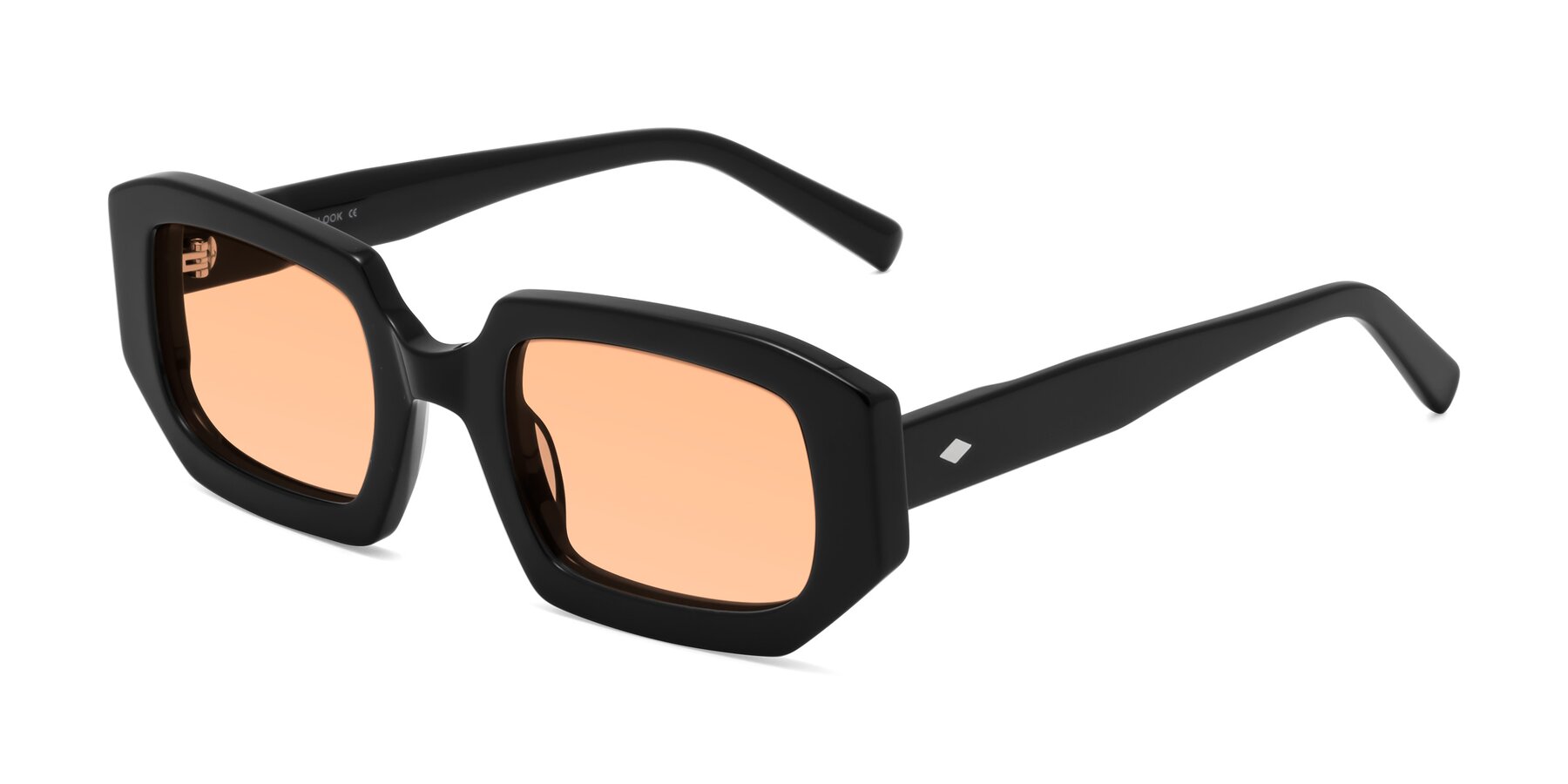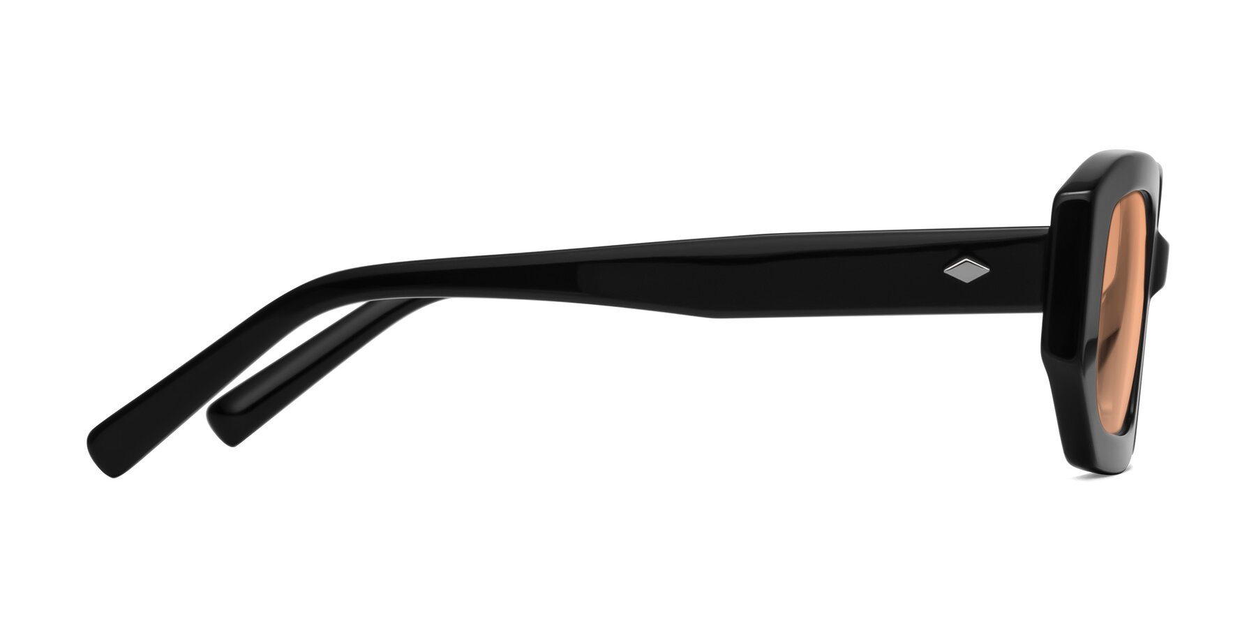 Black Thick Hipster Rectangle Tinted Sunglasses with Light Orange Sunwear Lenses