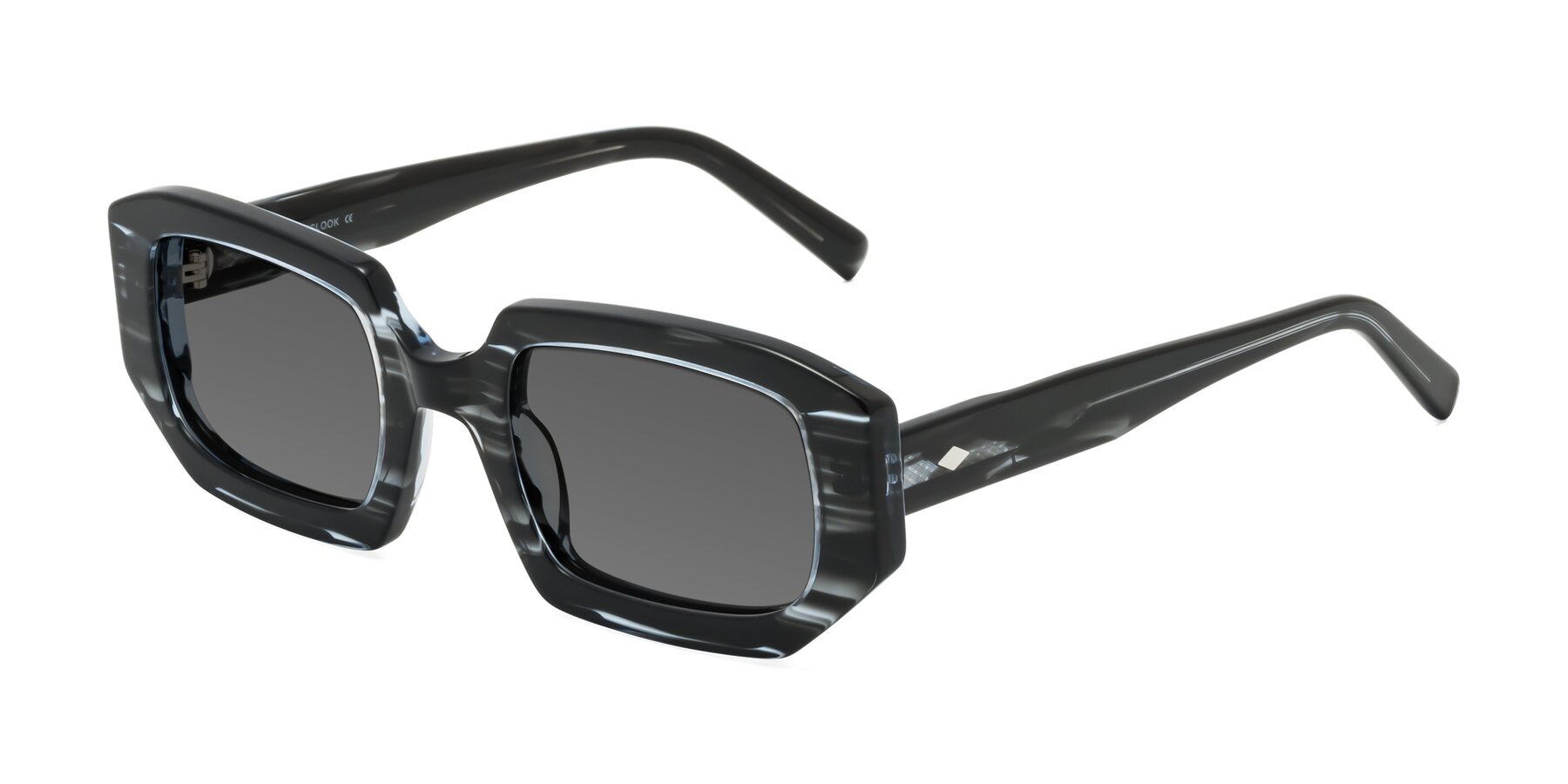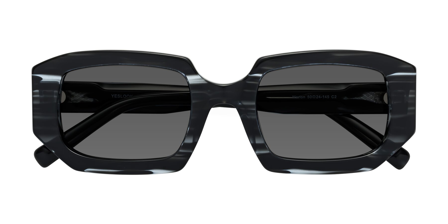 Black Striped Thick Hipster Rectangle Tinted Sunglasses with Medium Gray Sunwear Lenses
