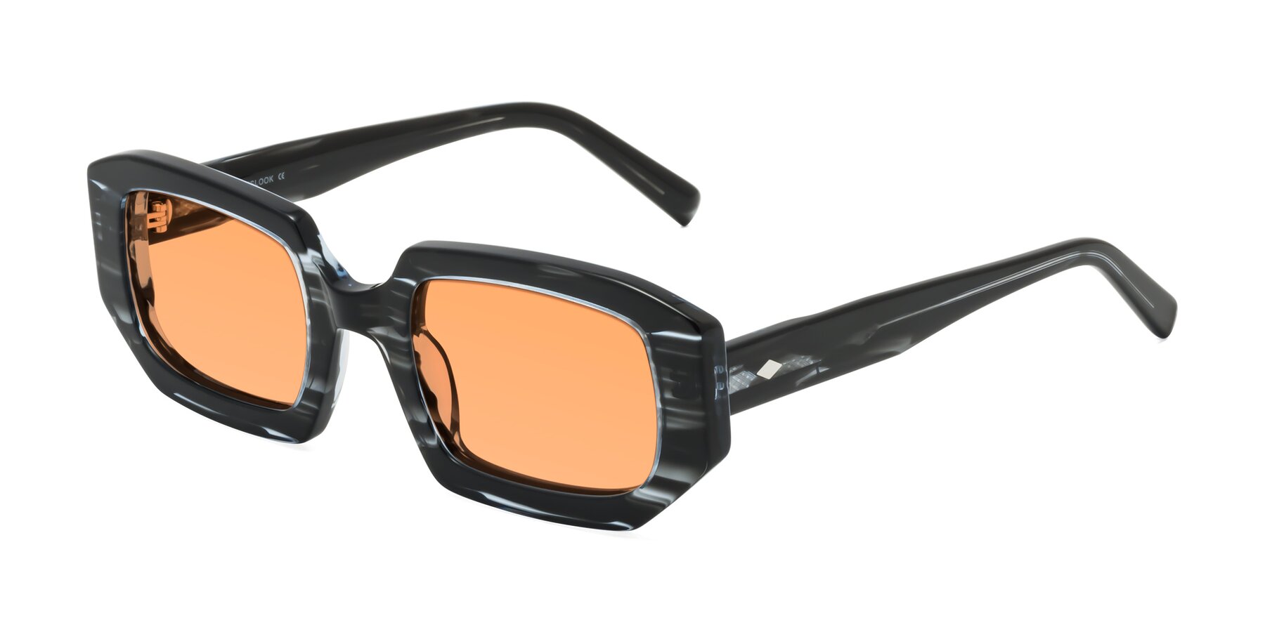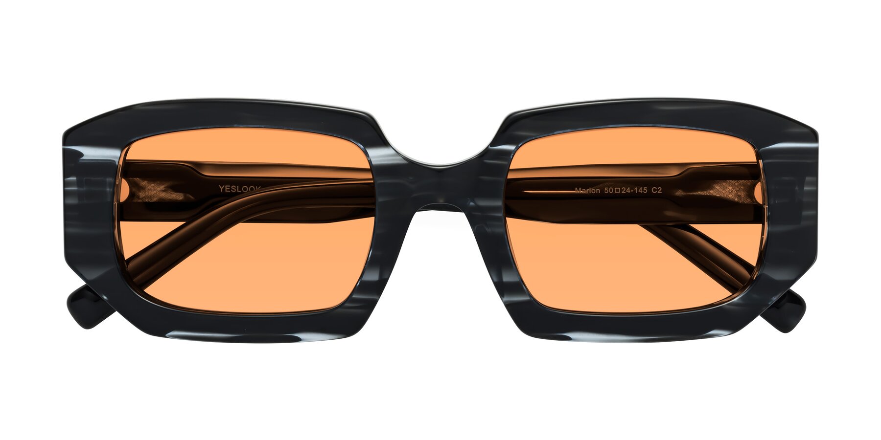 Black Striped Thick Hipster Rectangle Tinted Sunglasses with Medium Orange Sunwear Lenses