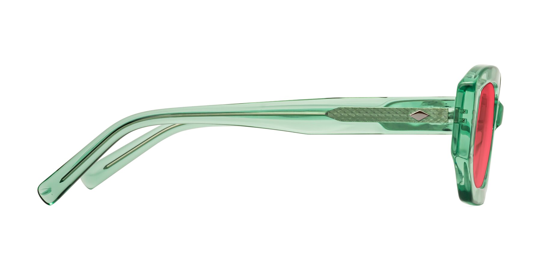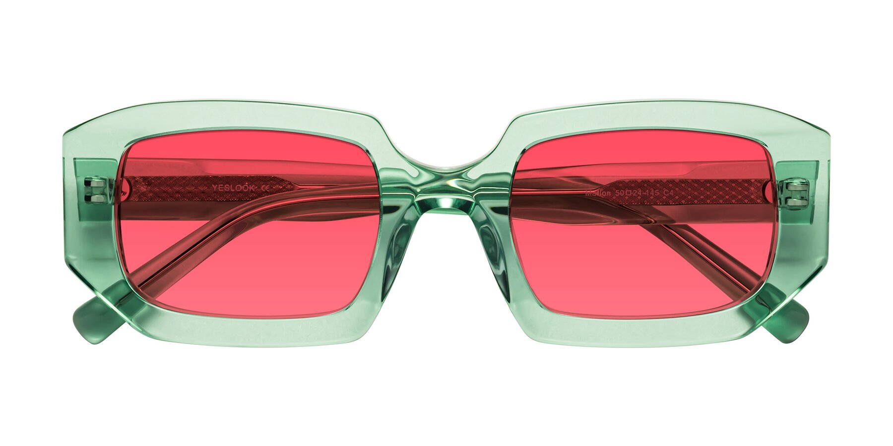 Transparent Green Thick Hipster Rectangle Tinted Sunglasses with Red Sunwear Lenses
