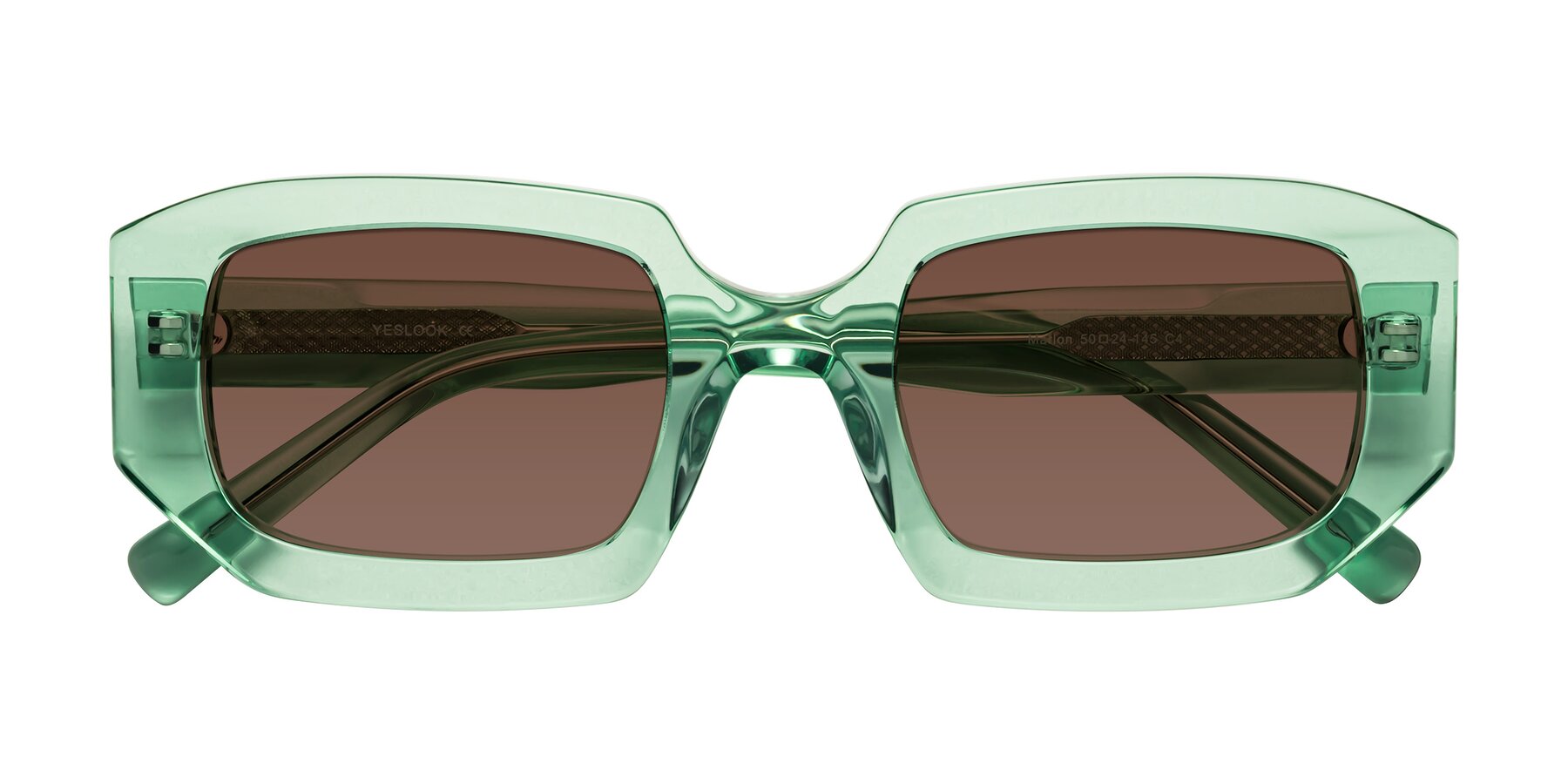 Transparent Green Thick Hipster Rectangle Tinted Sunglasses with Brown Sunwear Lenses