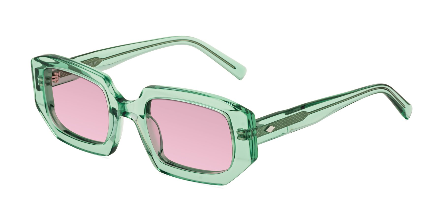 Transparent Green Thick Hipster Rectangle Tinted Sunglasses with Light Wine Sunwear Lenses