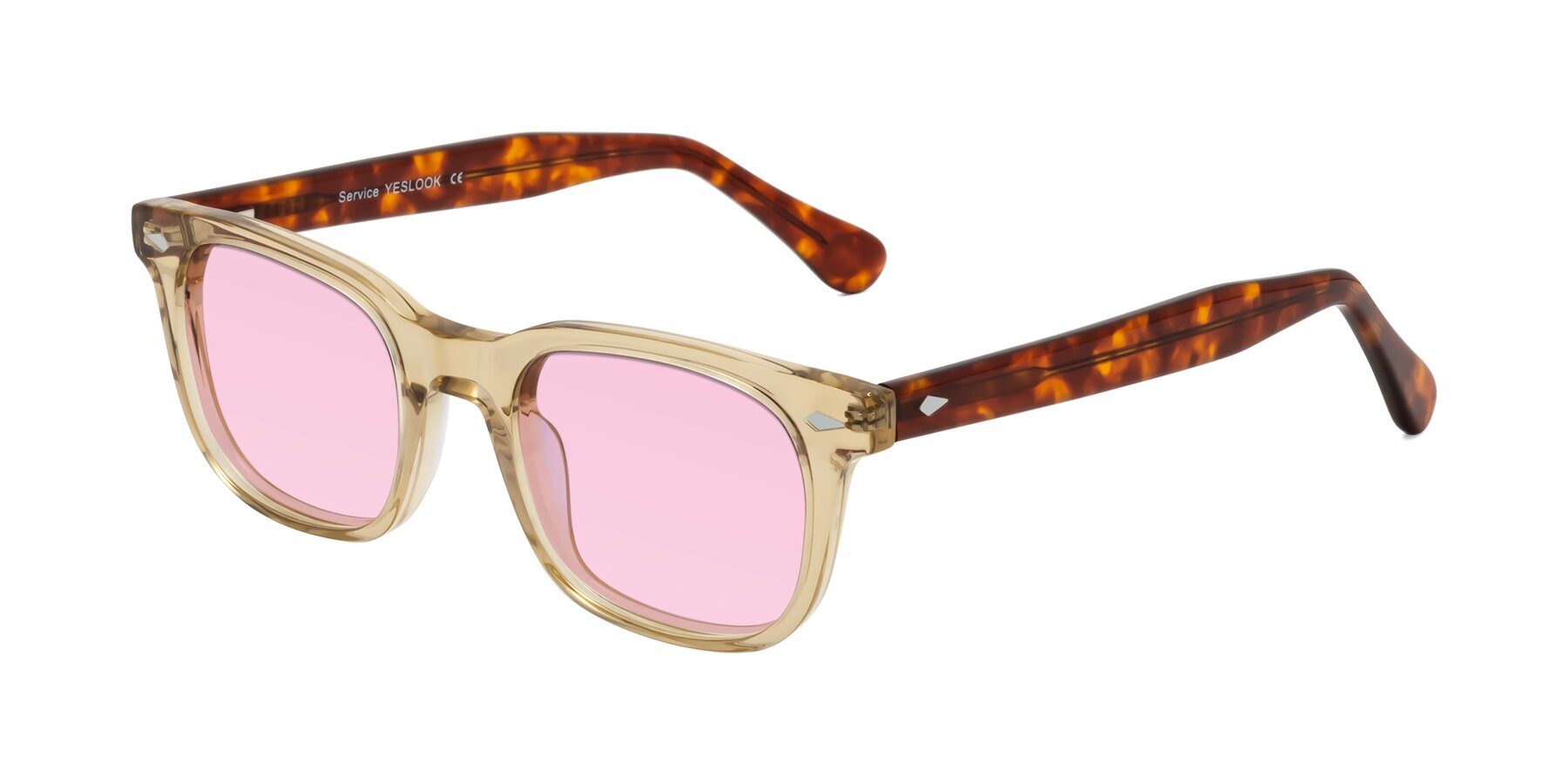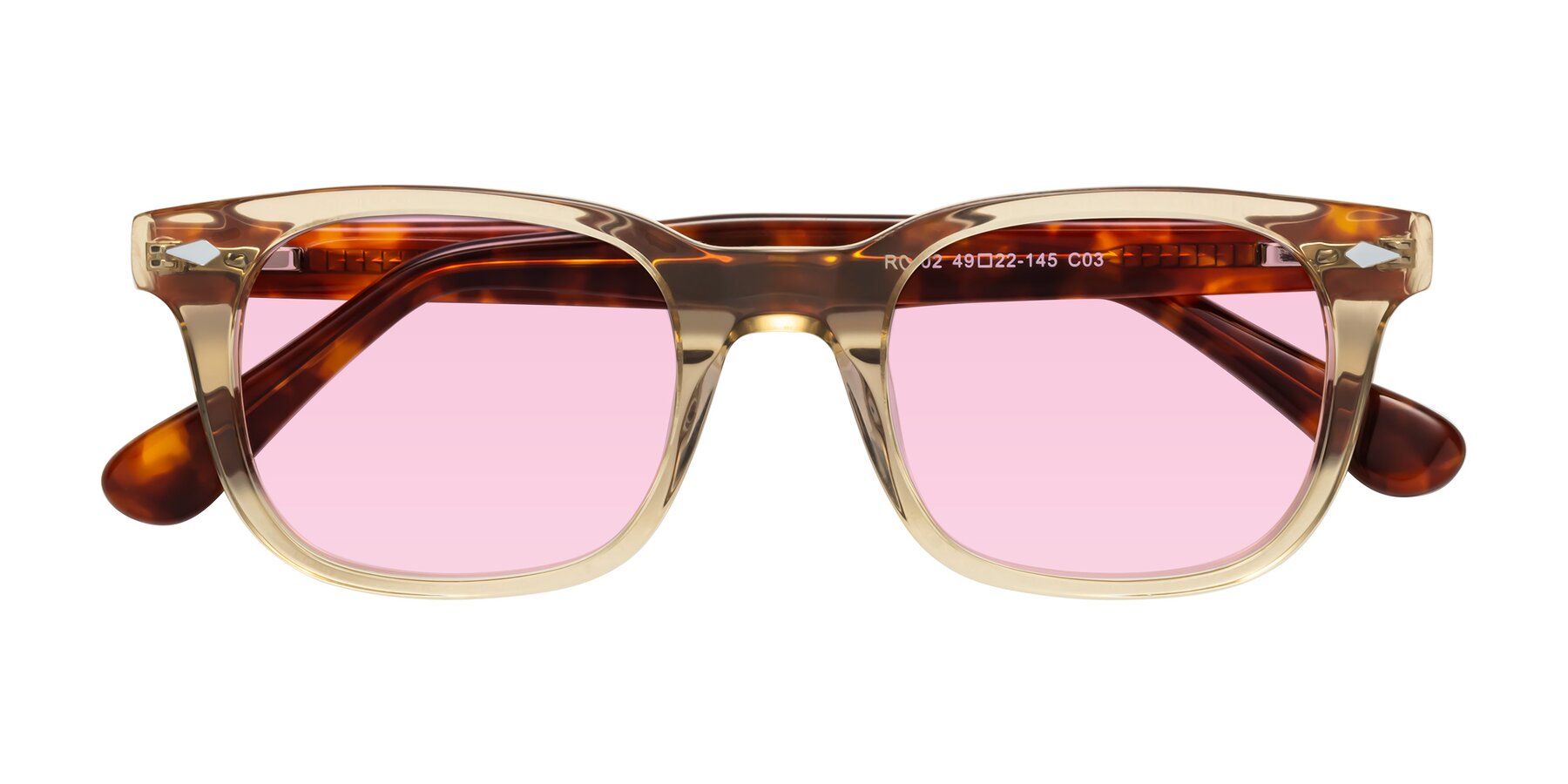 Champagne/Tortoise Classic Acetate Rectangle Tinted Sunglasses with Light Pink Sunwear Lenses