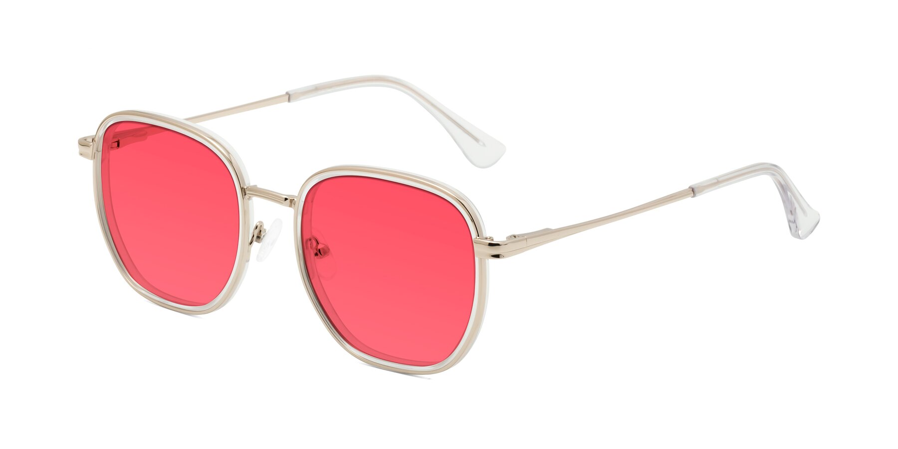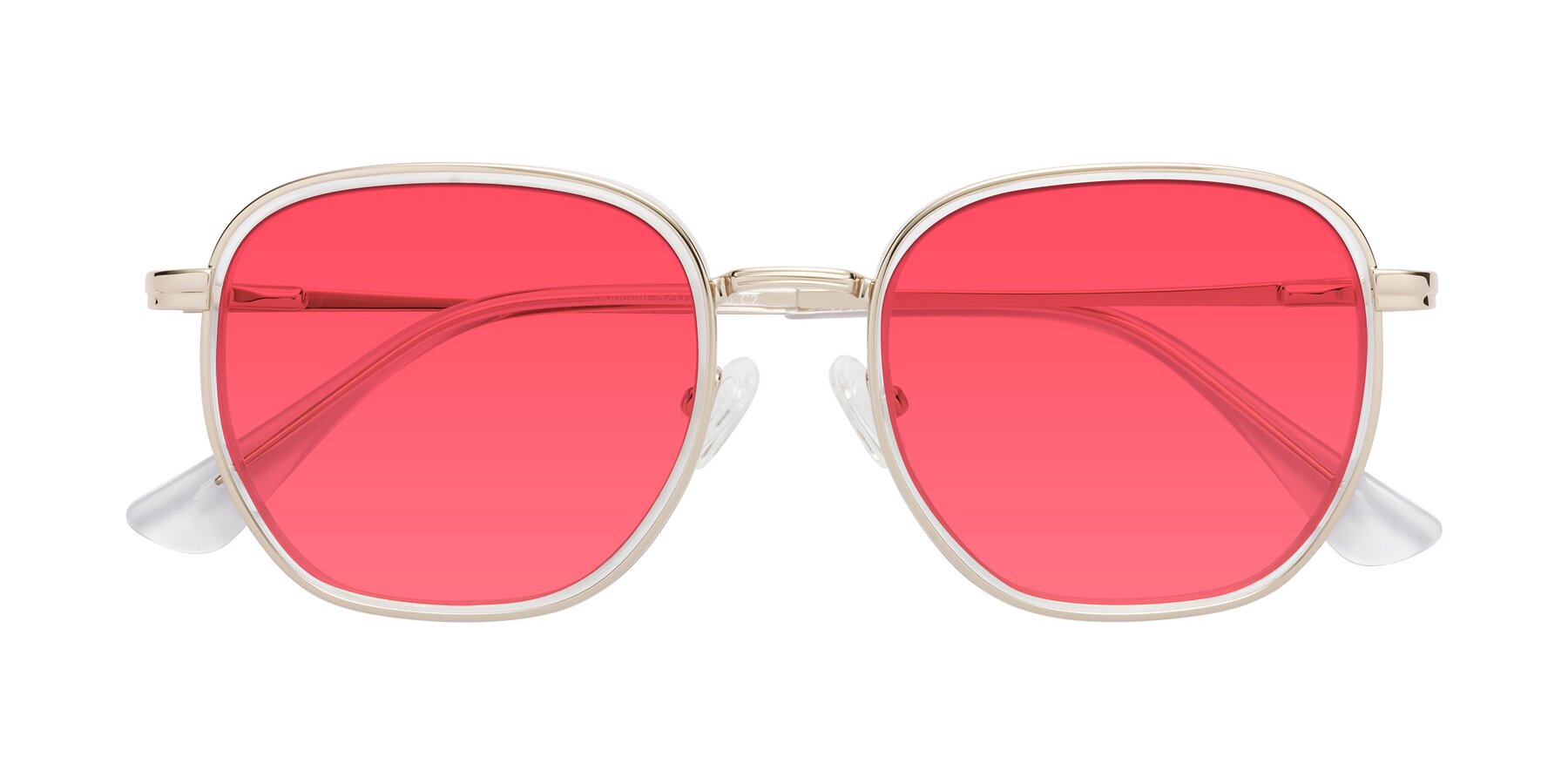 Pale Gold/Clear Mixed Windsor Square Tinted Sunglasses with Red Sunwear Lenses