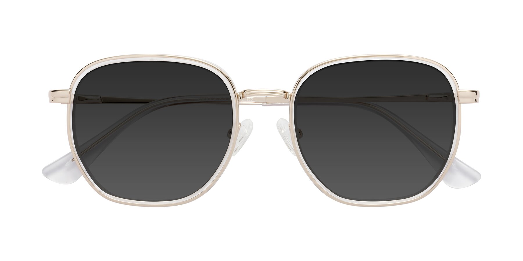 Pale Gold/Clear Mixed Windsor Square Tinted Sunglasses with Gray Sunwear Lenses
