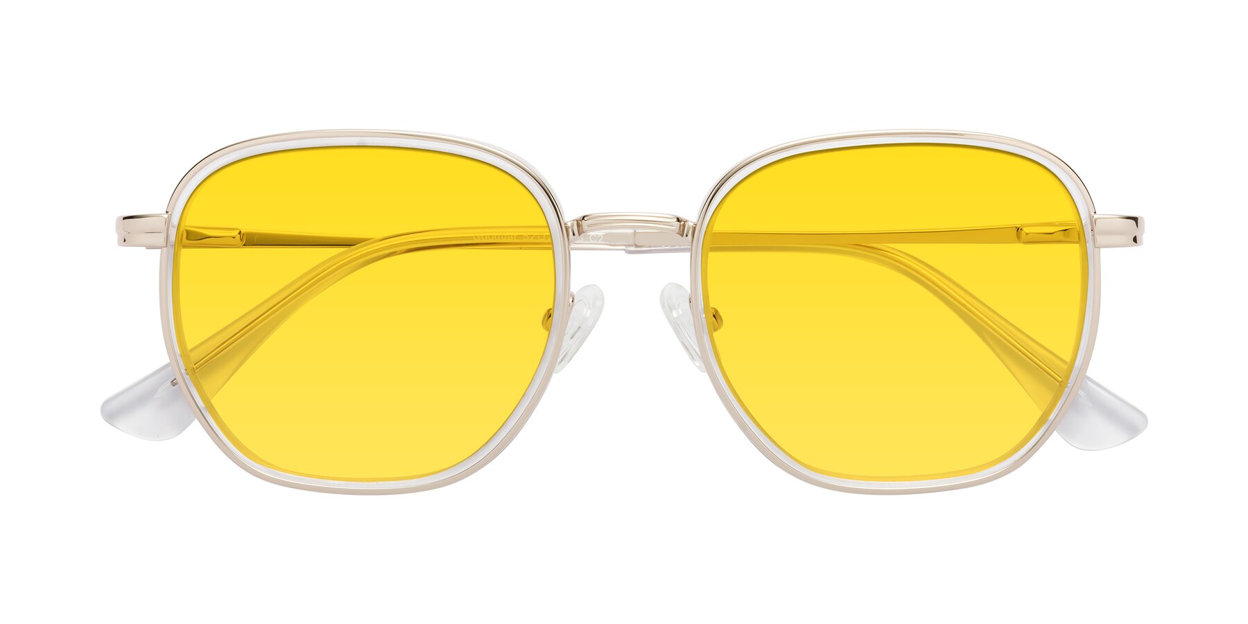 Pale Gold/Clear Mixed Windsor Square Tinted Sunglasses with Yellow Sunwear Lenses