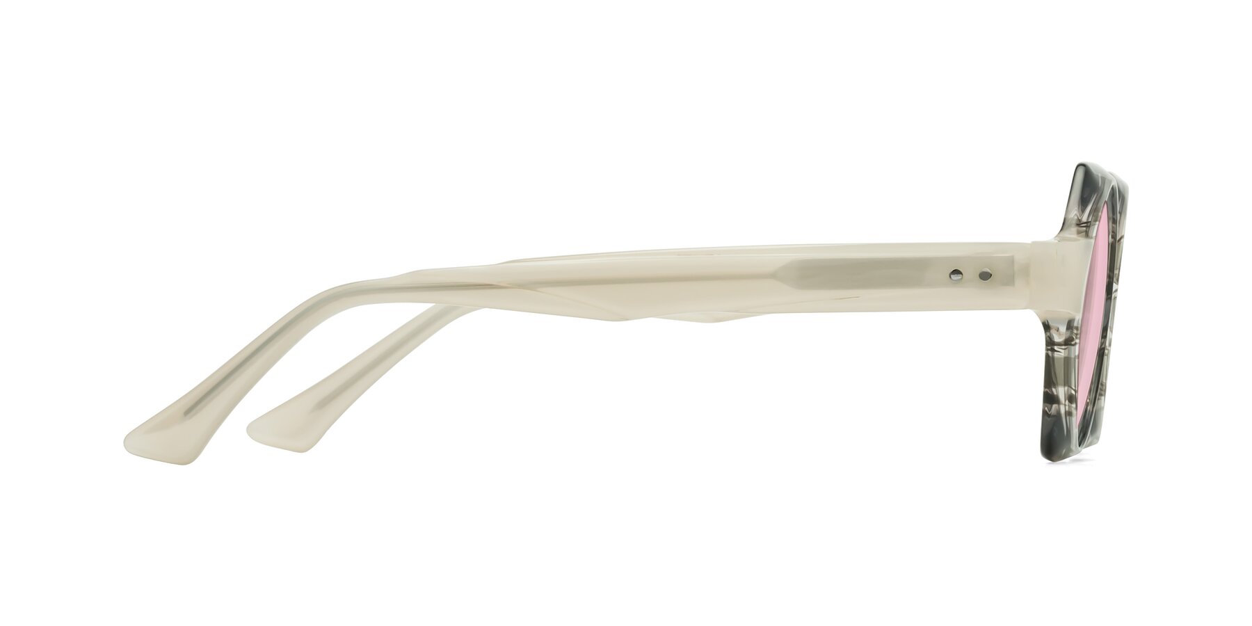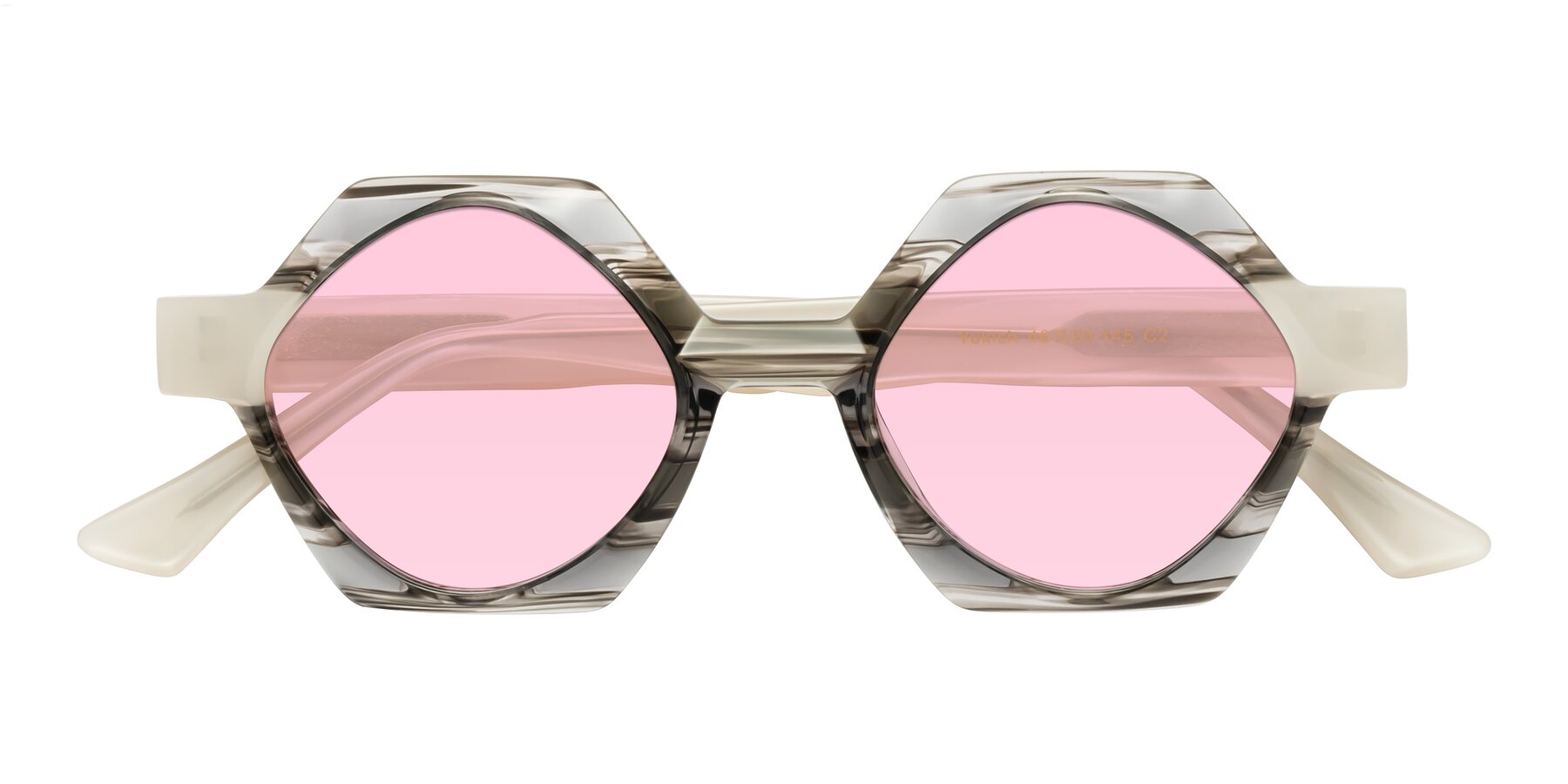 Gray Striped Designer Round Geometric Tinted Sunglasses with Light Pink Sunwear Lenses