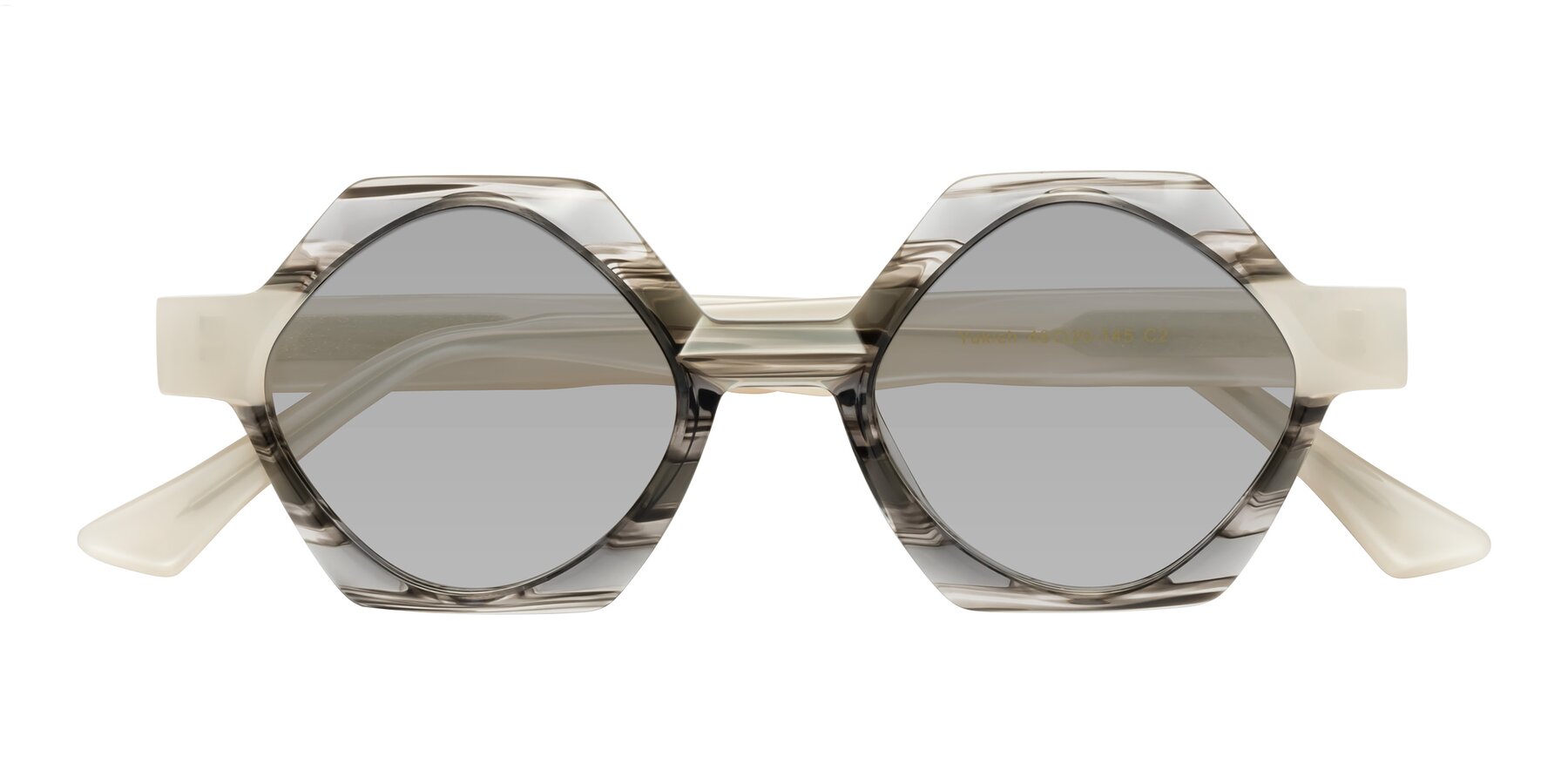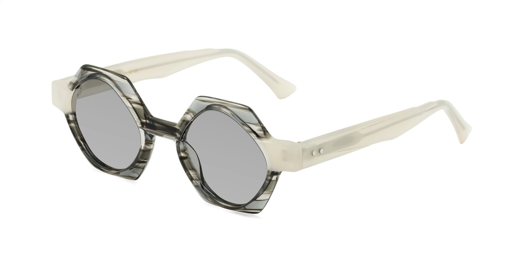 Gray Striped Designer Round Geometric Tinted Sunglasses with Light Gray Sunwear Lenses