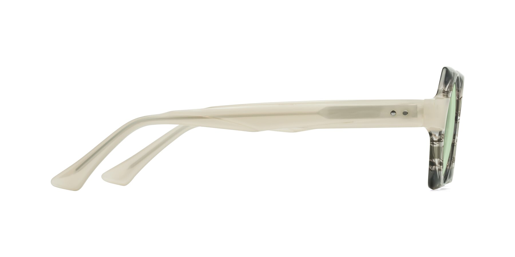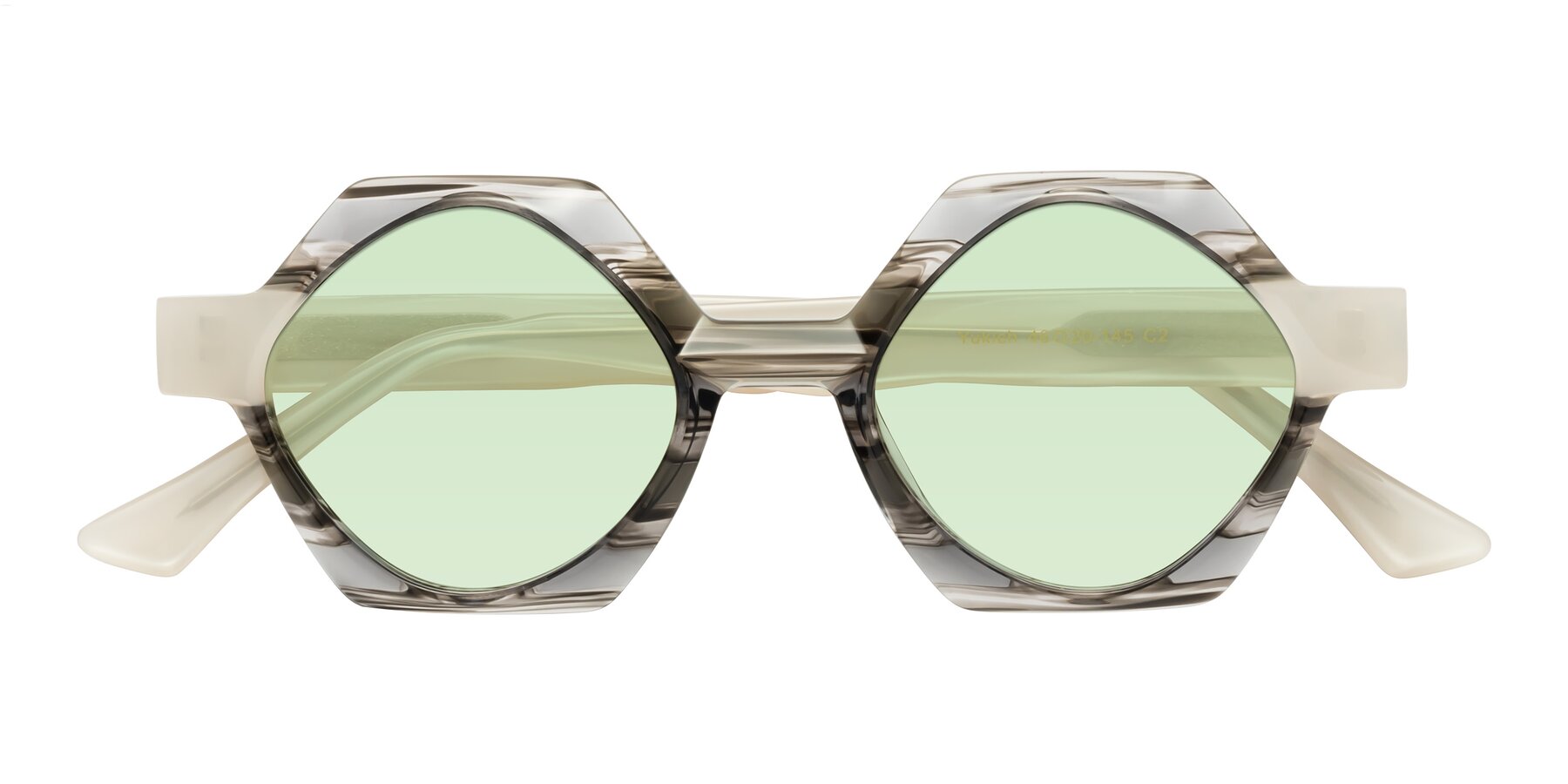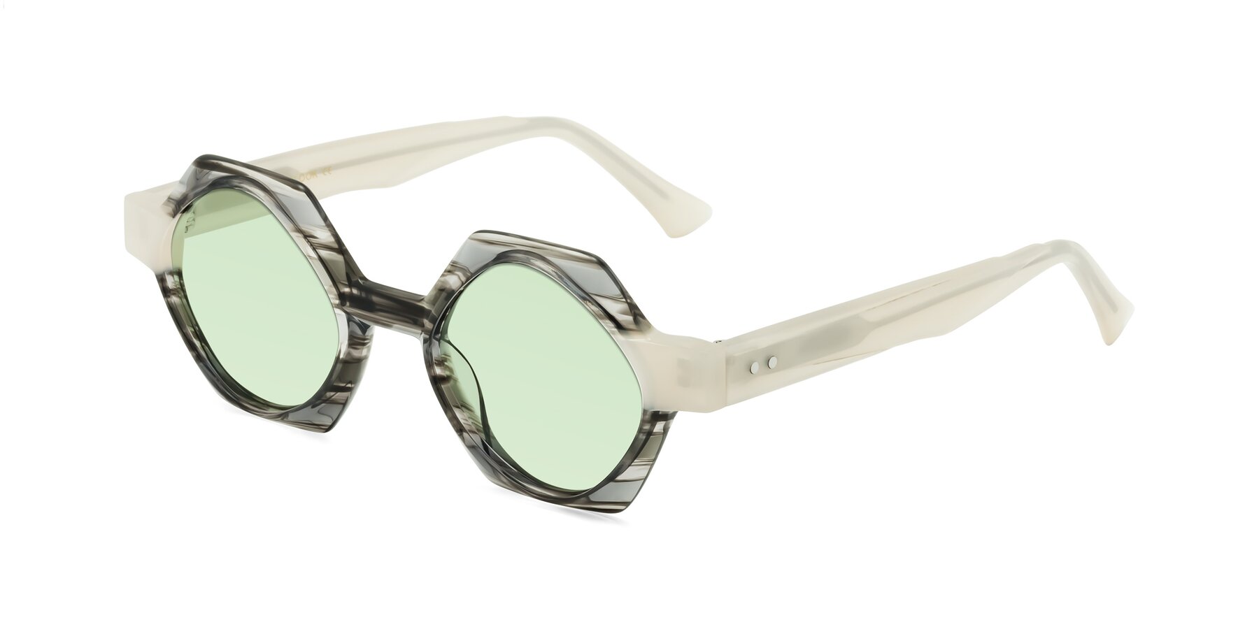 Gray Striped Designer Round Geometric Tinted Sunglasses with Light Green Sunwear Lenses
