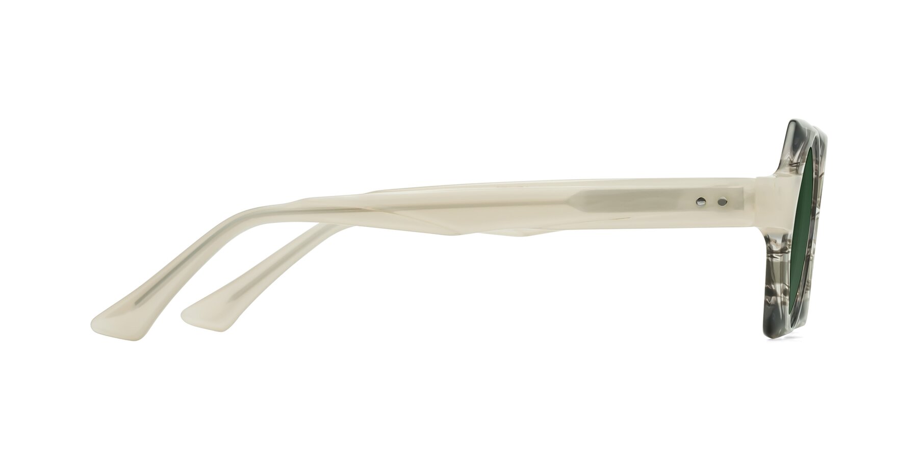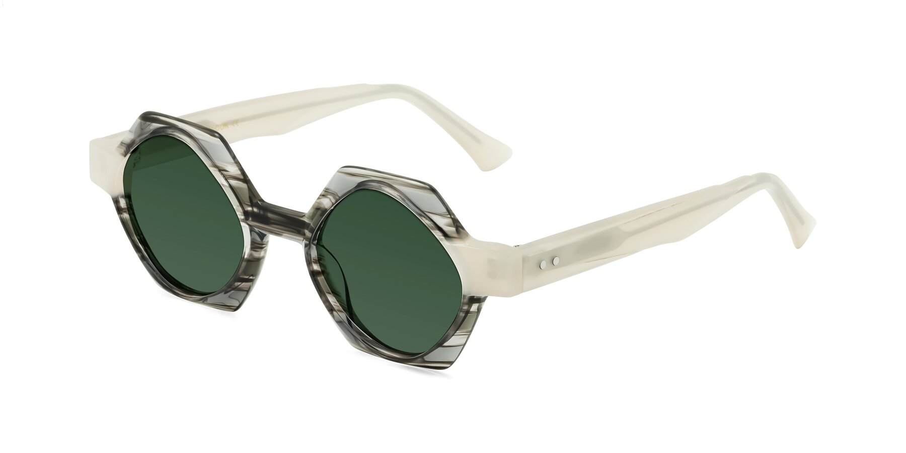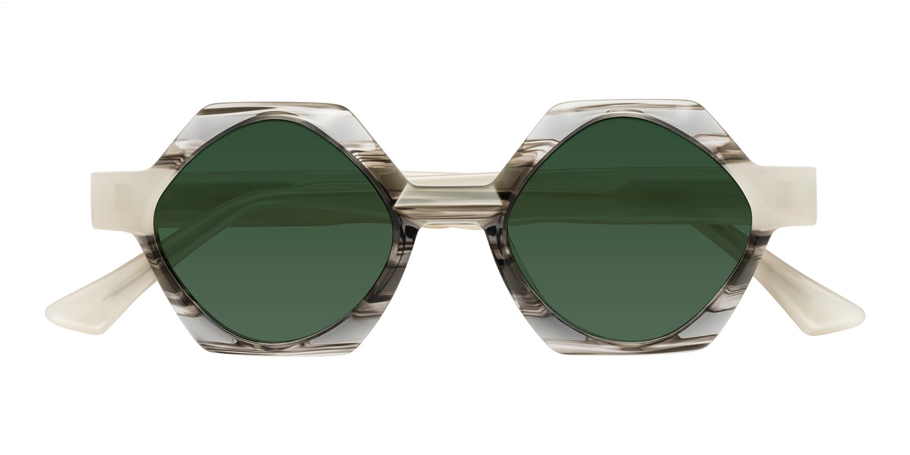 Gray Striped Designer Round Geometric Tinted Sunglasses with Green Sunwear Lenses